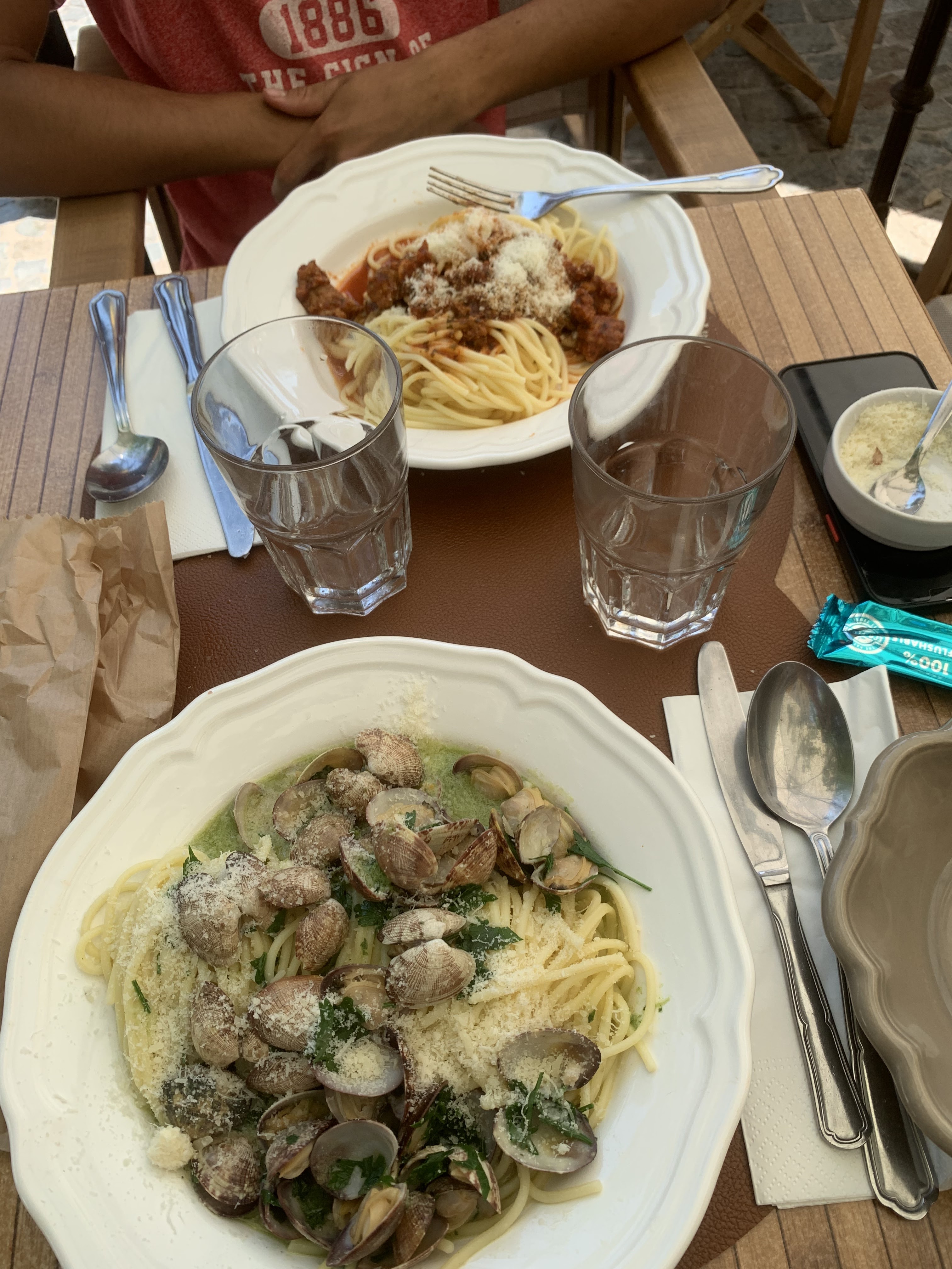 Joli cadre pour ce beau petit restaurant. Cependant, chaises ( type chaise producteur cinema) trop basses par rapport à la table malgré les coussins. Personnel sympathique, à l'écoute. Nous avions pris des pâtes à la bolognaise que nous avons trouvées quelconques, peu de parmesan à disposition. Portions très généreuses néanmoins. La carte bleue n'est pas acceptée, ce qui est rare et dommageable en 2022 .