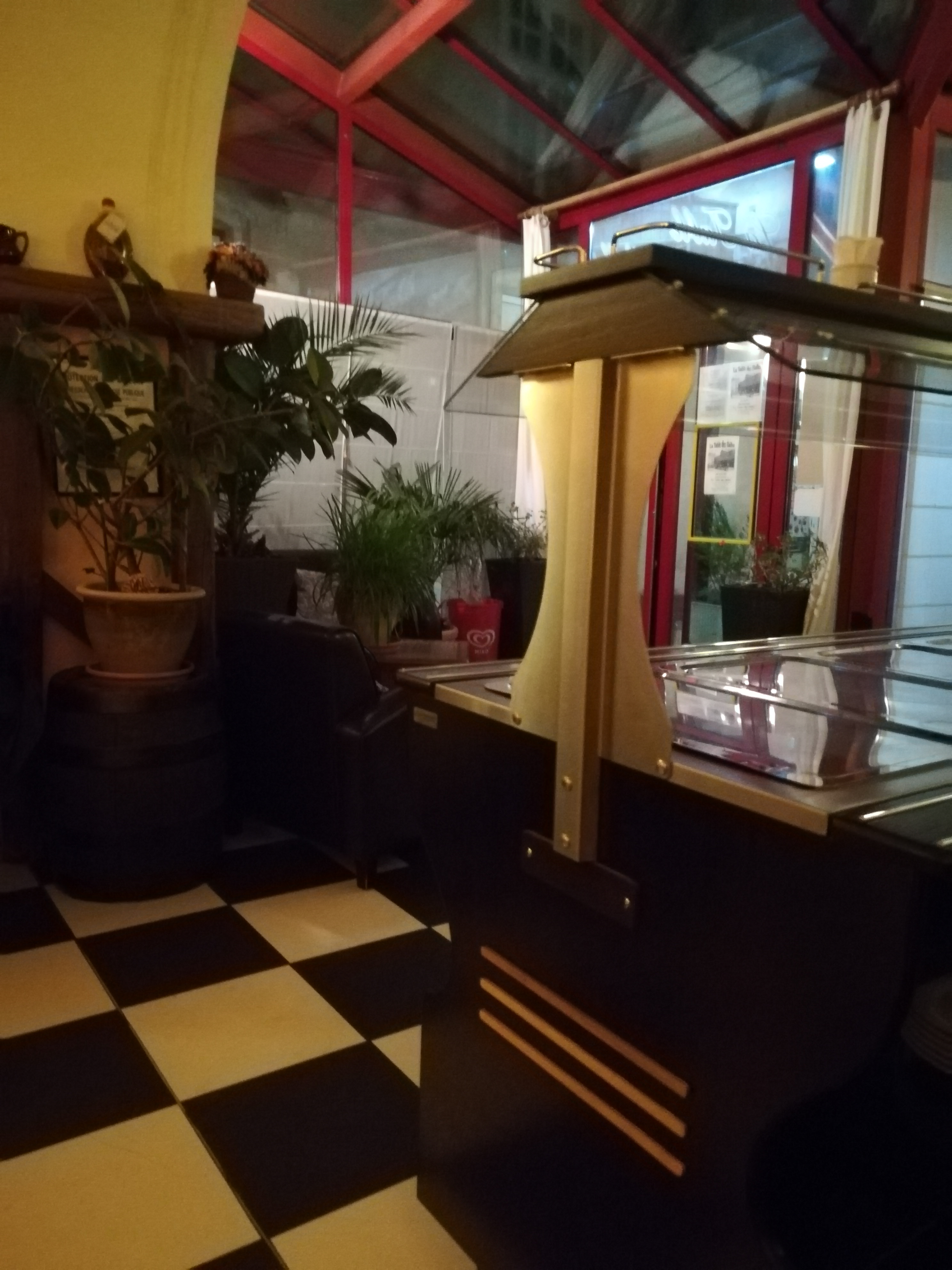 A éviter ! Commençons par le début, la déco. Alors certes c’est quelque chose de subjectif mais pour le coup elle est vraiment dans son jus et manque de cohérence. C’est dommage car le lieu a un potentiel incroyable ! Impossible de passer à côté du buffet d’entrée à volonté en plein milieu du restaurant composé de toutes sortes de crudités en boîte et autres entrées peu appétissantes. Nous passons notre tour. Belle surprise à l’ouverture de la carte, 3 plats du jours seulement, mention de « poêlée du marché ». Tout ceci est gage de produits de qualité, frais et cuisinés. Pas du tout ! Quelle déception quand nos plats sont arrivés. Une « poêlée du marché » congelée, sans assaisonnement. Un riz qui est sûrement resté trop longtemps au fond de la casserole… l’escalope était correcte. Pour le dessert, une tarte meringuée malheureusement pas maison et surchargée d’une chantilly, d’un coulis de fruits rouges et d’une crème anglaise… pour les fromages pas de grande surprise.. Le personnel était agréable et sympathique. Mais quel dommage de payer pour de l’assemblage plutôt que pour de la cuisine lorsqu’on va au restaurant..