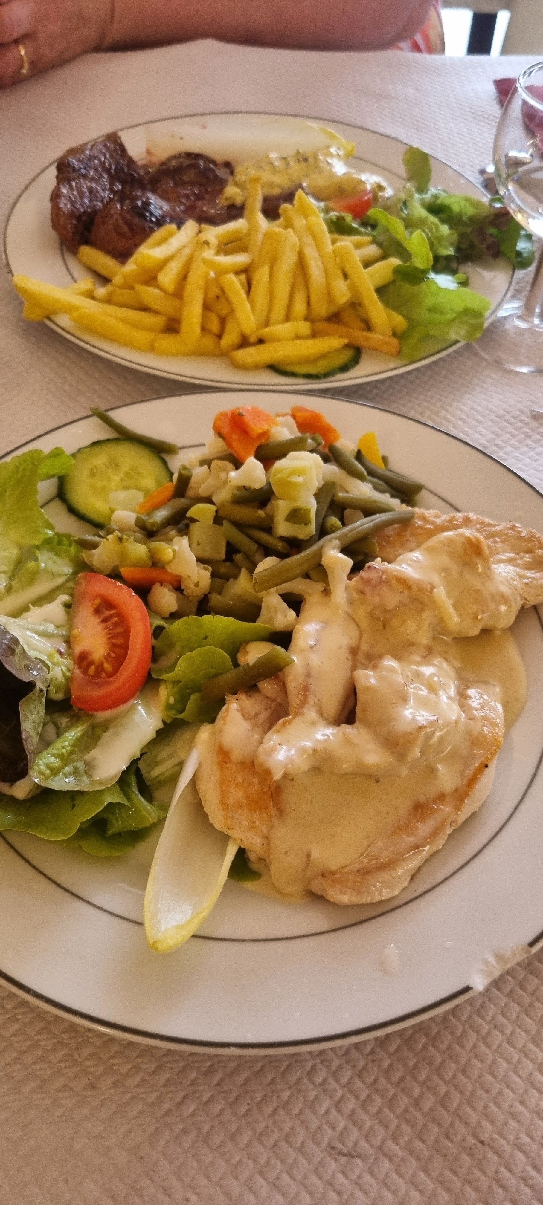 Un très bon accueil, souraint et agréable Restaurant très propre Cuisine simple (frites surgelés, poêlée bretonne en boite)mais un très bon rapport qualité/ prix