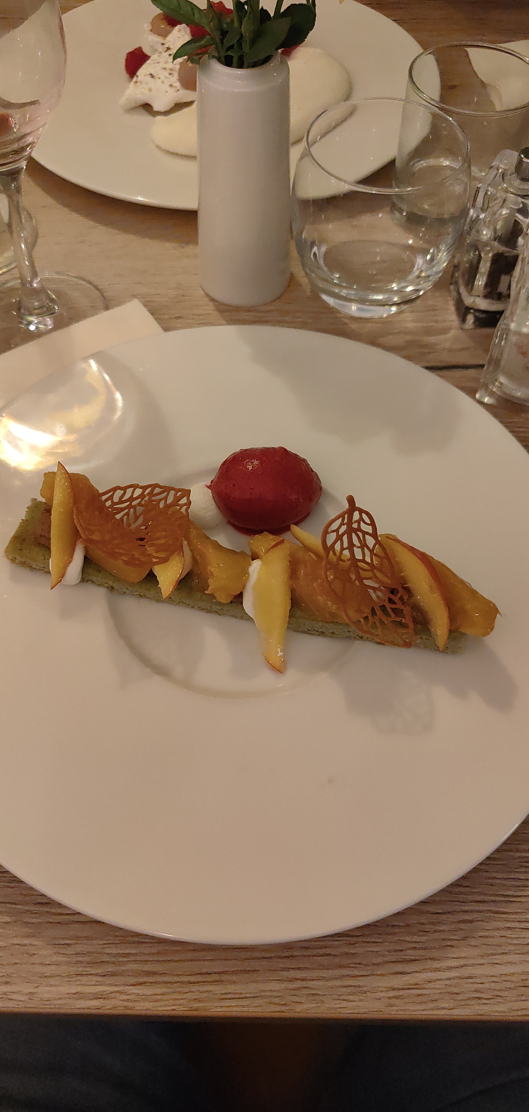En revenant de nos vacances..et pour finir en beauté..un restau gastronomique.. équilibre des saveurs..des produits ultra frais.. Un dessert rhubarbe.. à tomber Continuez.. On reviendra ! MERCI