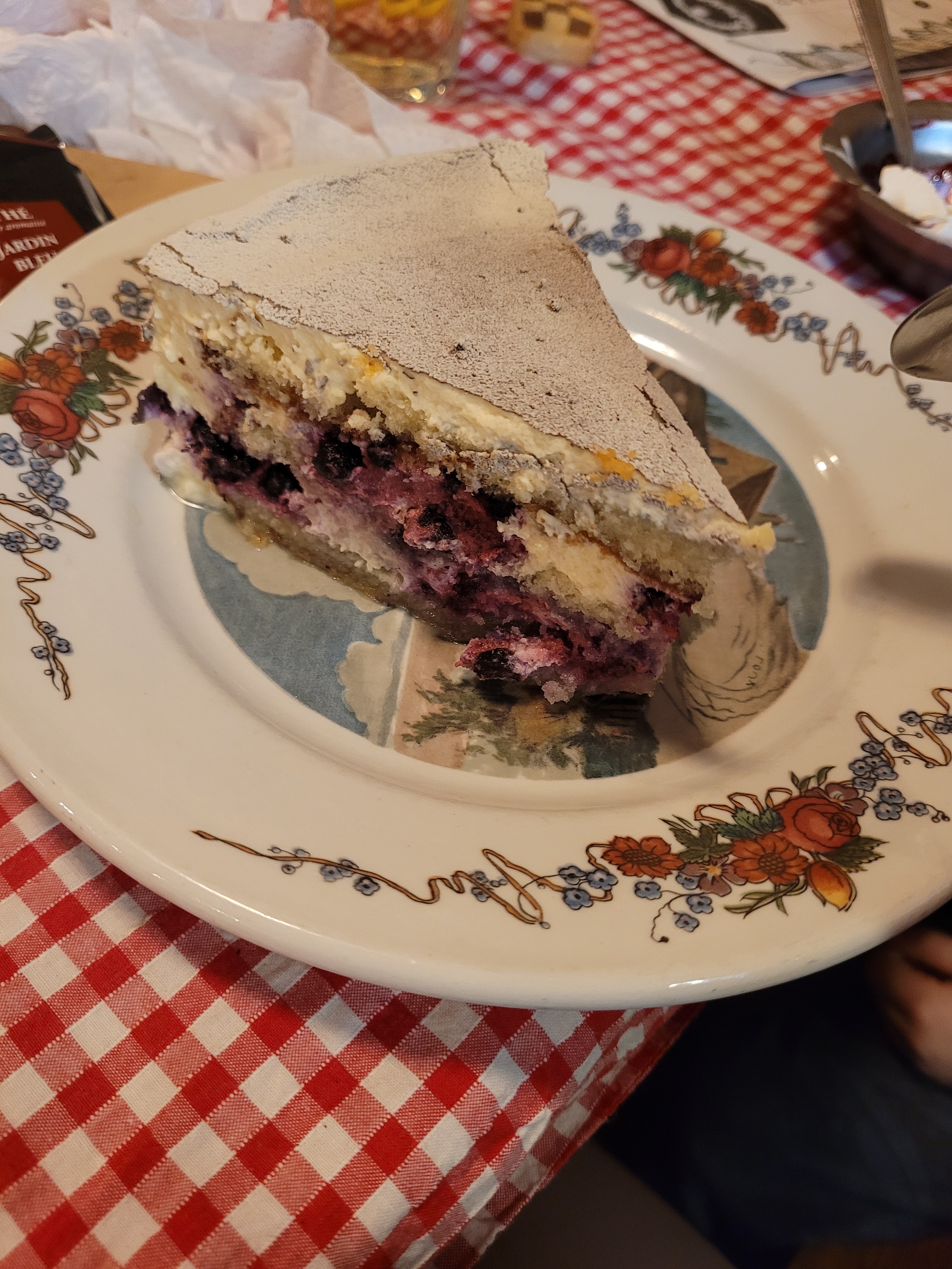 Une belle découverte nous nous sommes régalés ! Nous avons pris le menu avec 2 entrées/2 plats/2 desserts au choix. Tous les plats proposés ont été gouté sauf le plat principal ! Préparez vous à bien manger... Les portions sont plus que généreuses... Je fais toujours honneur a mon repas mais la trop copieux ! Ambiance sympathique, avec des nappes a carreaux, des chaises typiques... Une équipe au soin... Testé la limonade myrtille hummmm Je recommande +++++