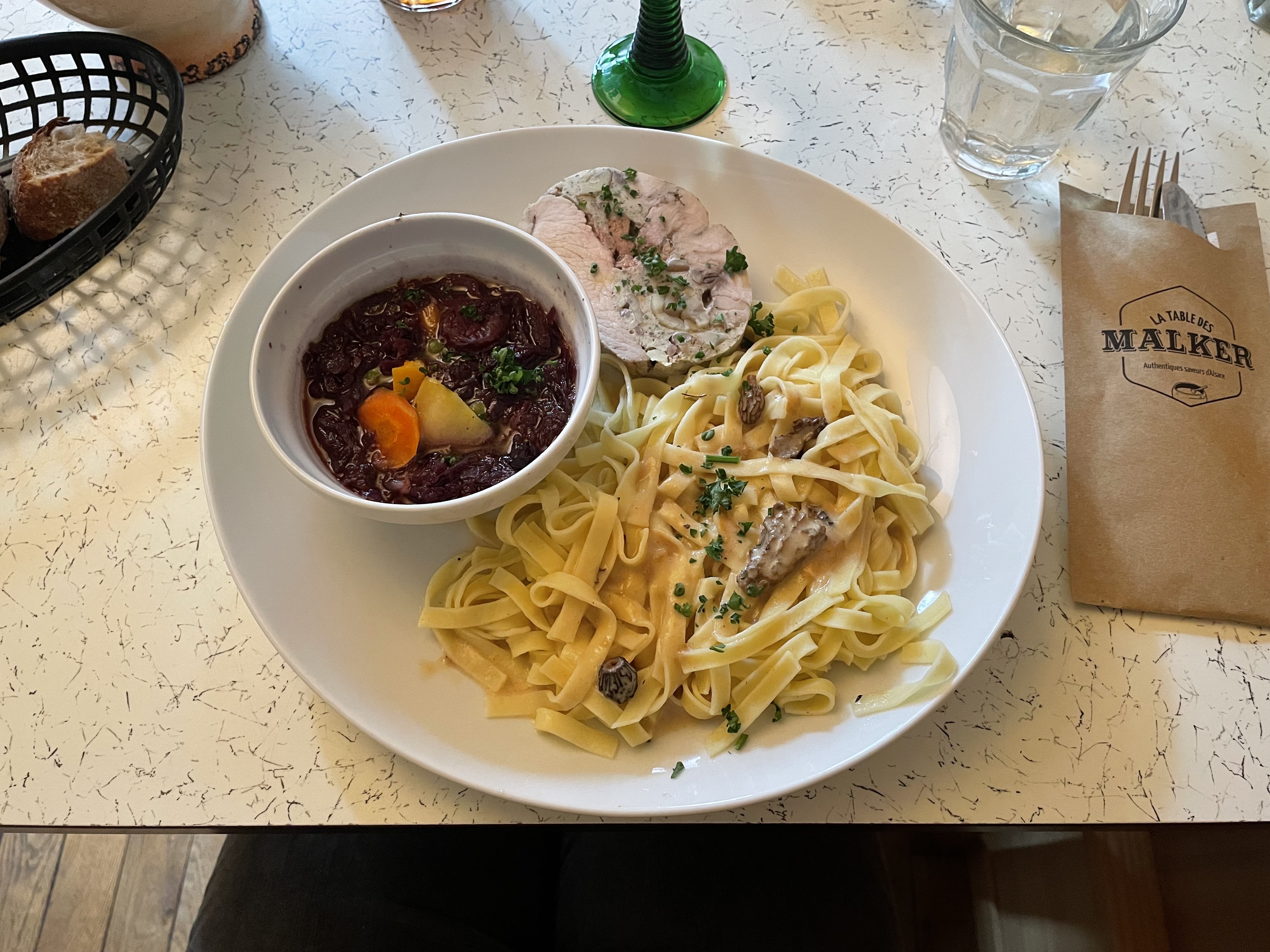 Un petit arrêt dans la ville de Munster, quelques achats locaux et ce resto qui nous a été chaudement recommandé ! Banco ! Nous avons bien fait, nous avons très bien mangé, les plats étaient copieux et de qualité et le service a été impeccable.