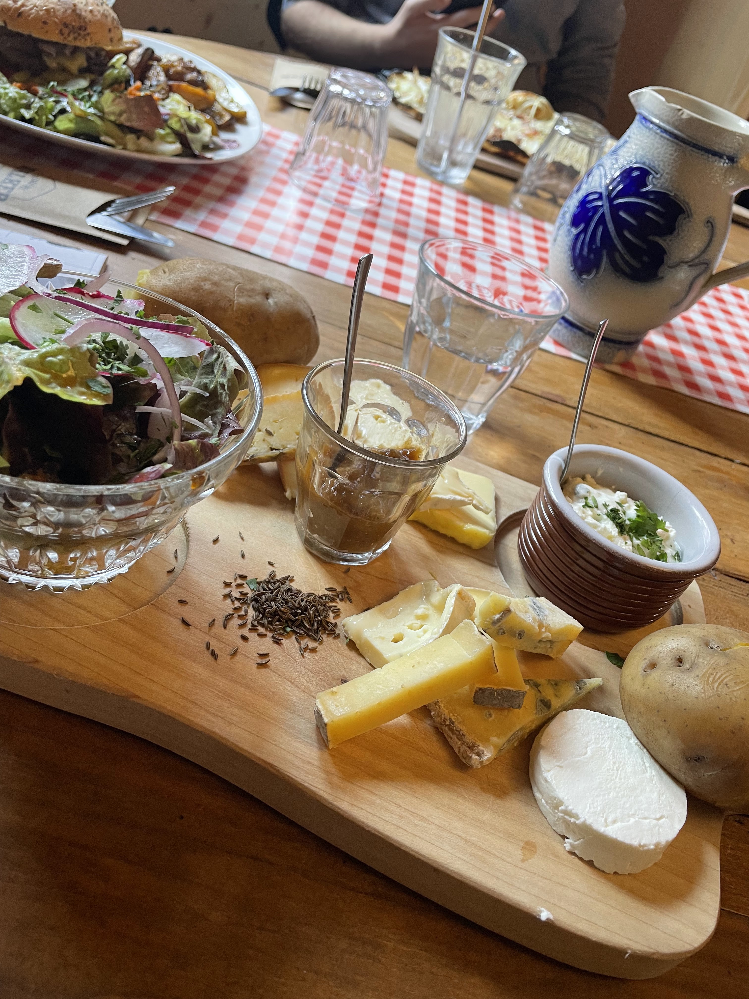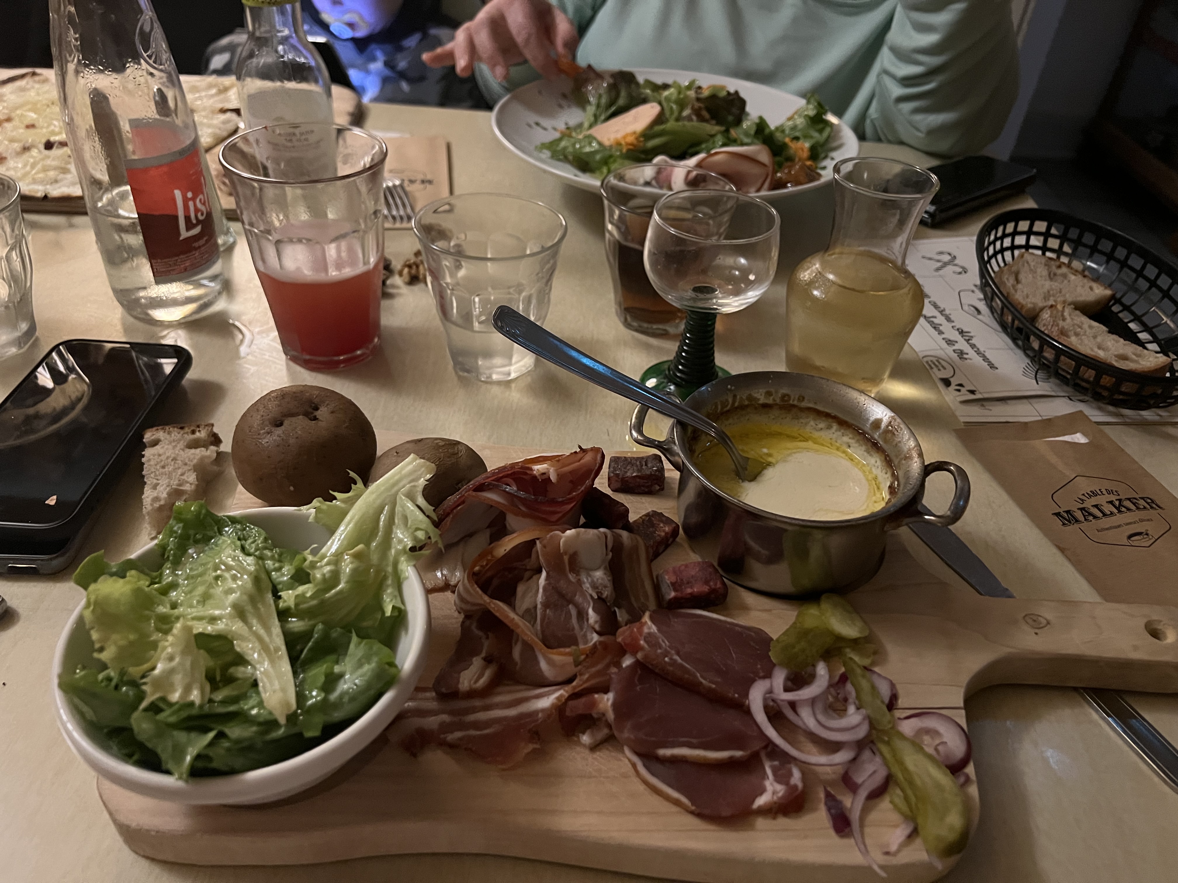 Que choisir... Tout nous faisait envie. Nous avons succombé pour la fondue au Munster... Un régal ! De la très bonne charcuterie locale, des petites crudités en pickles... Vraiment délicieux. Nous recommandons avec gourmandise 😊