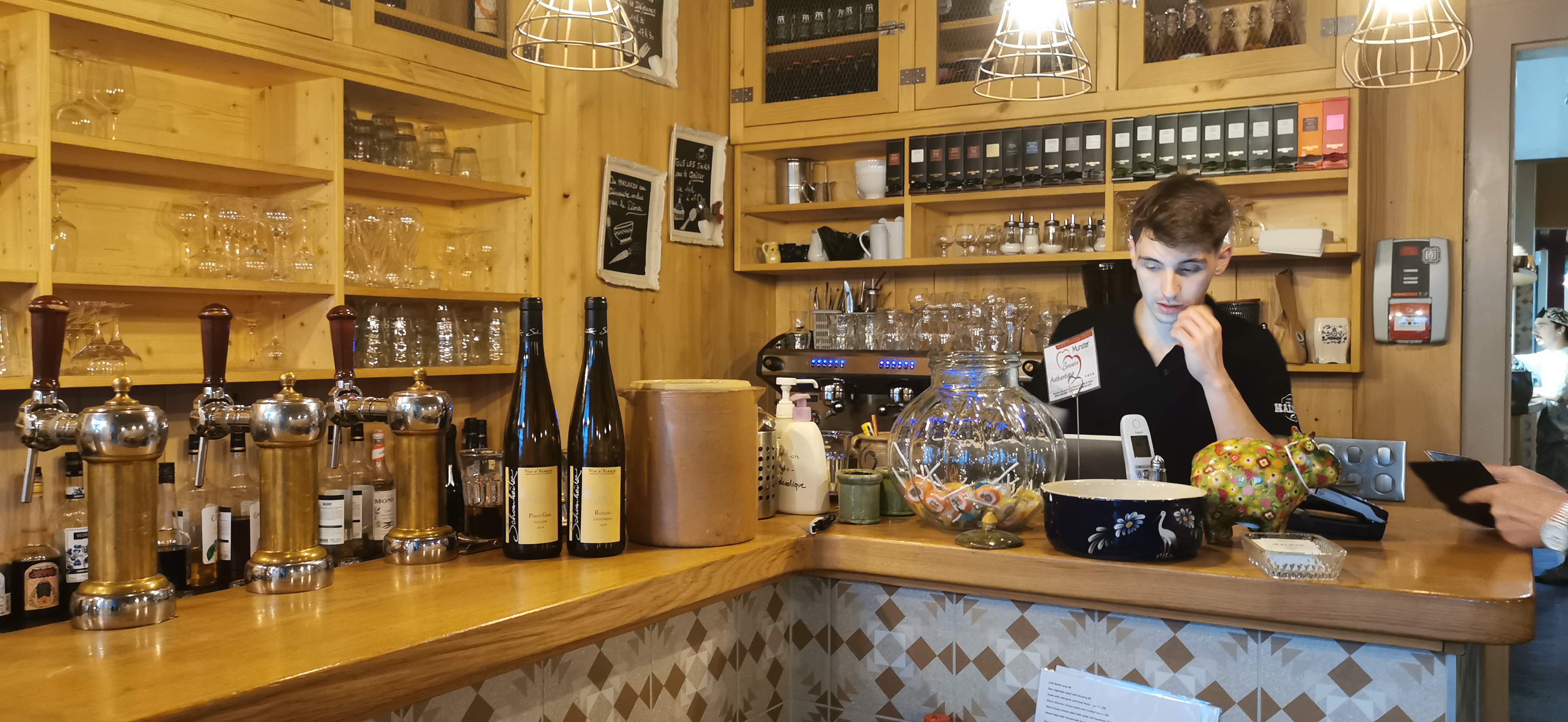 Quelle belle découverte, un petit verre en terrasse sous les vignes avec le sourire et les conseilles de l'agréable serveuse. Des desserts succulents et on peut emporter des tourtes chauffées sur place avec un assortiment de crudités. Tout est fait maison.