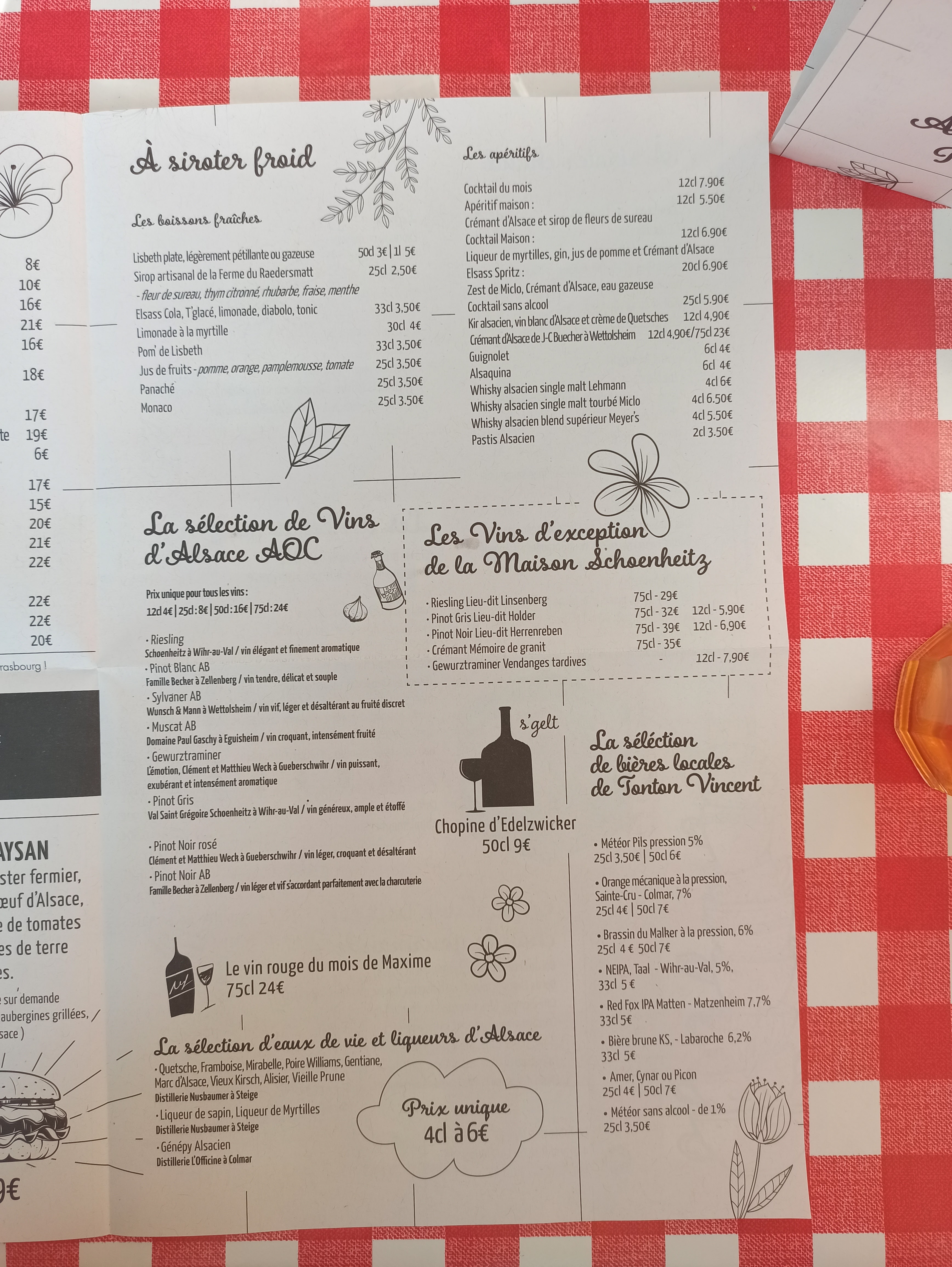 Bon petit restaurant au cœur de Munster avec de bons produits locaux, le personnel est aux petits soins donc je recommande aux visiteurs de passage dans le coin