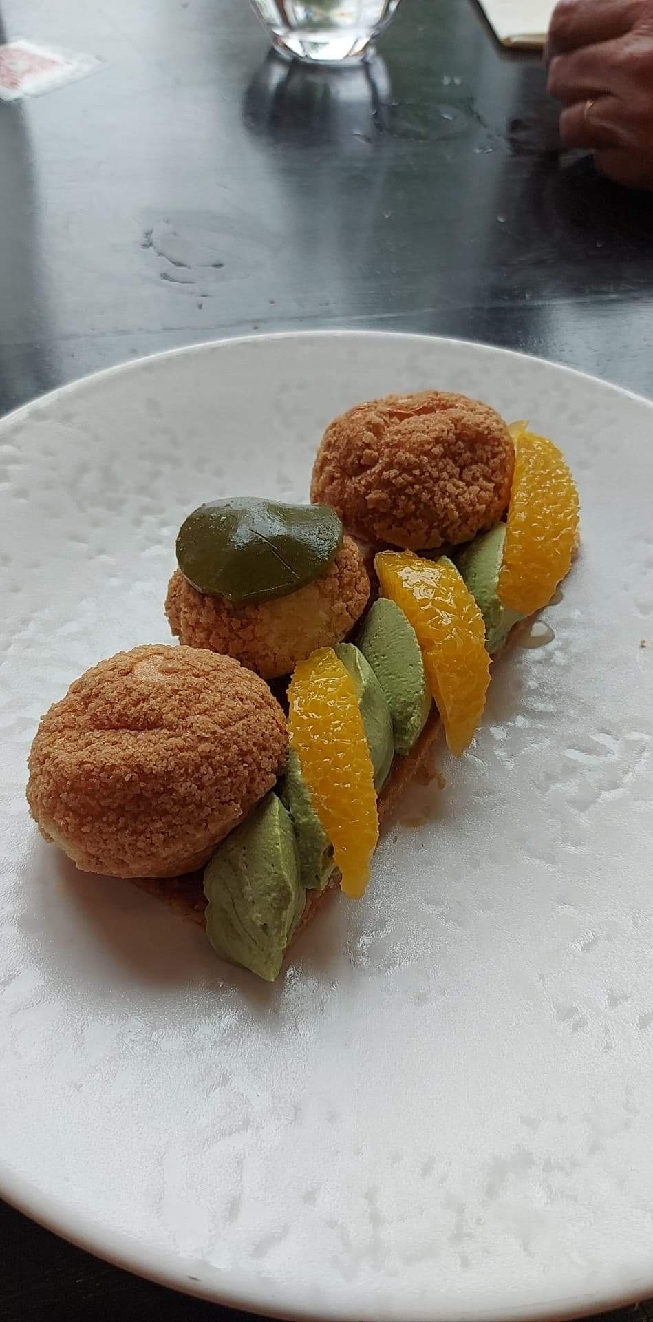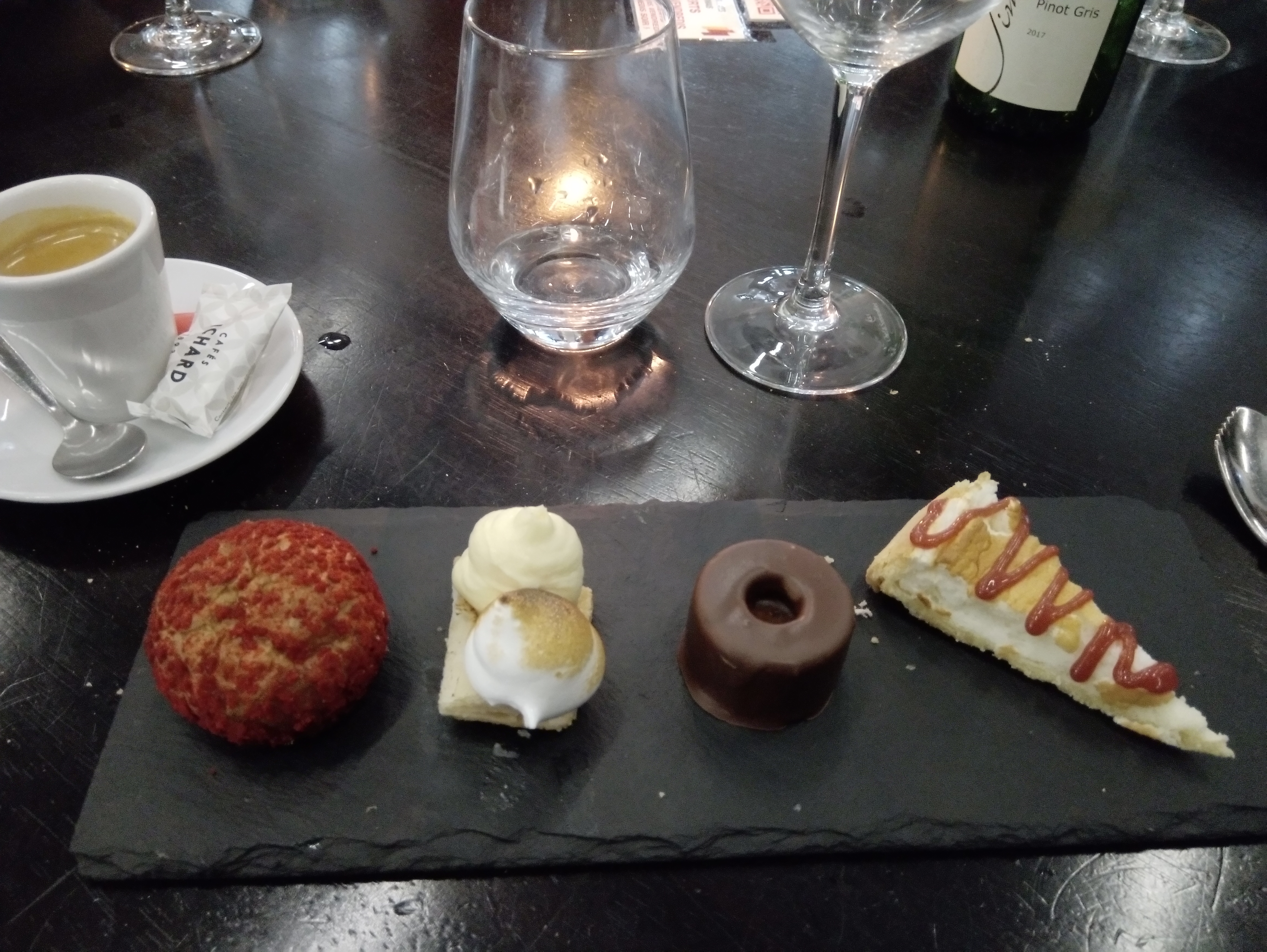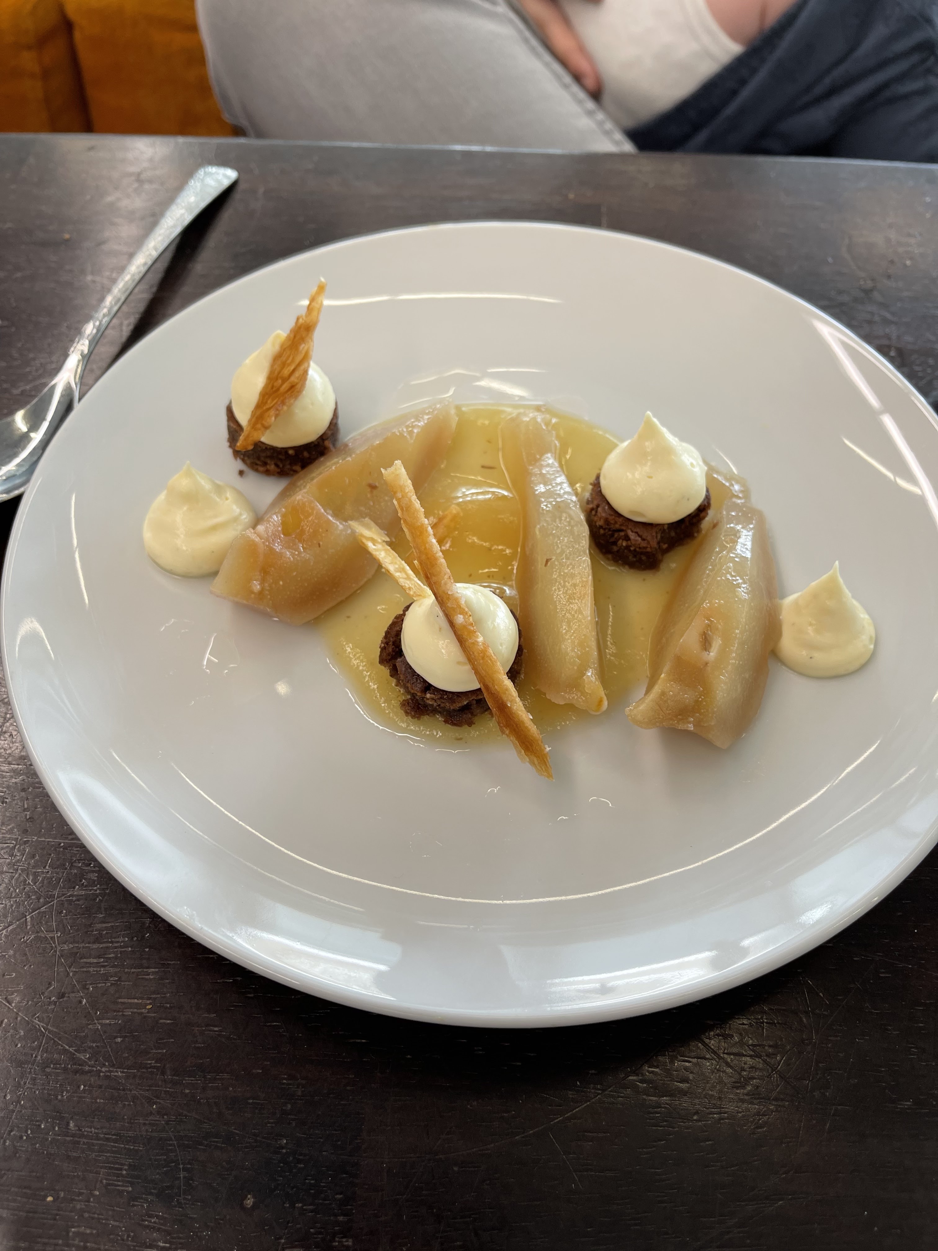 Hélas tout avait plutôt pas trop mal commencé, mais une de nos gencive a failli se retrouver sévèrement percée par un morceau de plastique très pointu dans le dessert. Pas sérieux le control qualité. Pour seule compensation pour la frayeur et la douleur un seul café nous a été offert sans ménagement. Sans aucune empathie et accompagnée d' excuses bidons et médiocres, la serveuse visiblement pas du métier ? (ou alors elle s'est trompé de spécialité) nous a juste ignoré en baragouinant quelques excuses lues sur prompteur, et en nous assénant avec fierté : On vous a offert un café c'est déjà bien ! On aurait attendu plus d'un soi disant restaurant de qualité. LAMENTABLE. Ce restaurant vient de perdre 3 clients C'est dommage car le chef est très bon