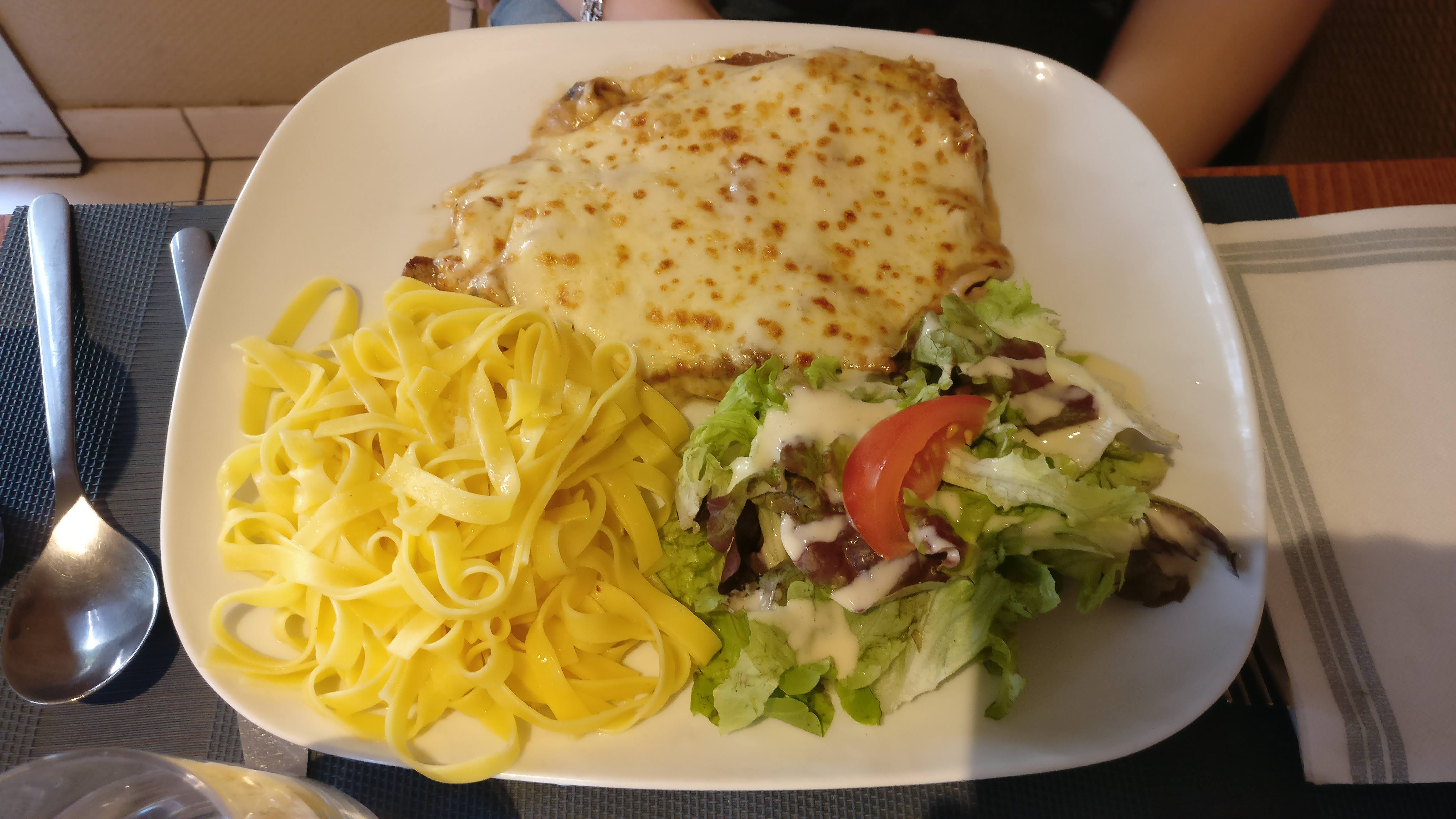 Très bon repas pour deux personnes. Un super rapport qualité prix. Des assiettes copieuses bien remplies mais pas écœurantes. Possibilité de panacher les différents accompagnements (frites ou tagliatelles ou salade). Que des produits frais et fait maison. Un service irréprochable, aucune attente mais pas non plus de pression de la part du serveur. Je recommande vivement pour un repas en duo ou un repas en famille.