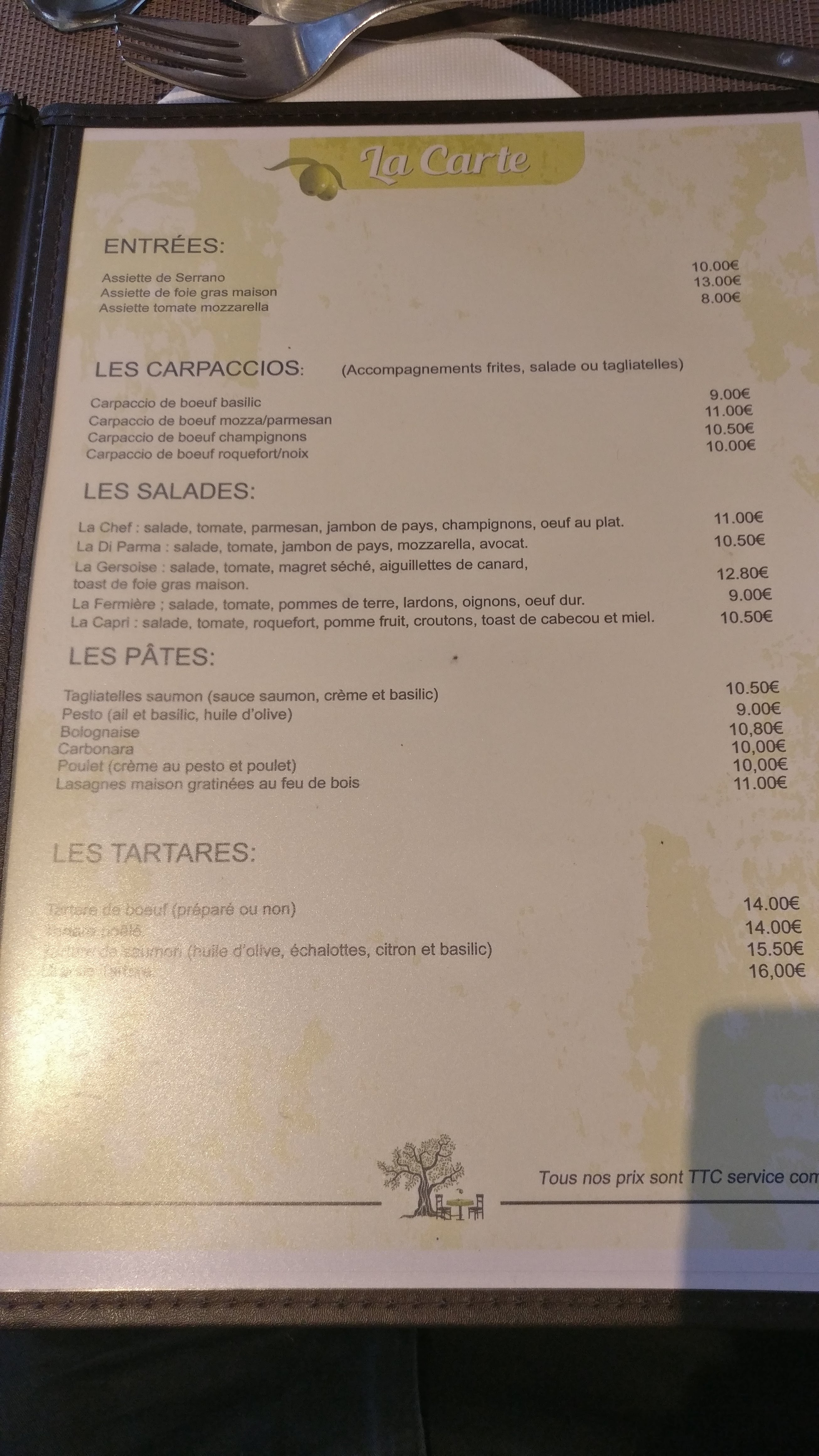 Avec surprise les repas du soir sont au même tarif que le midi...le personnel est très agréable... A refaire c est sur....