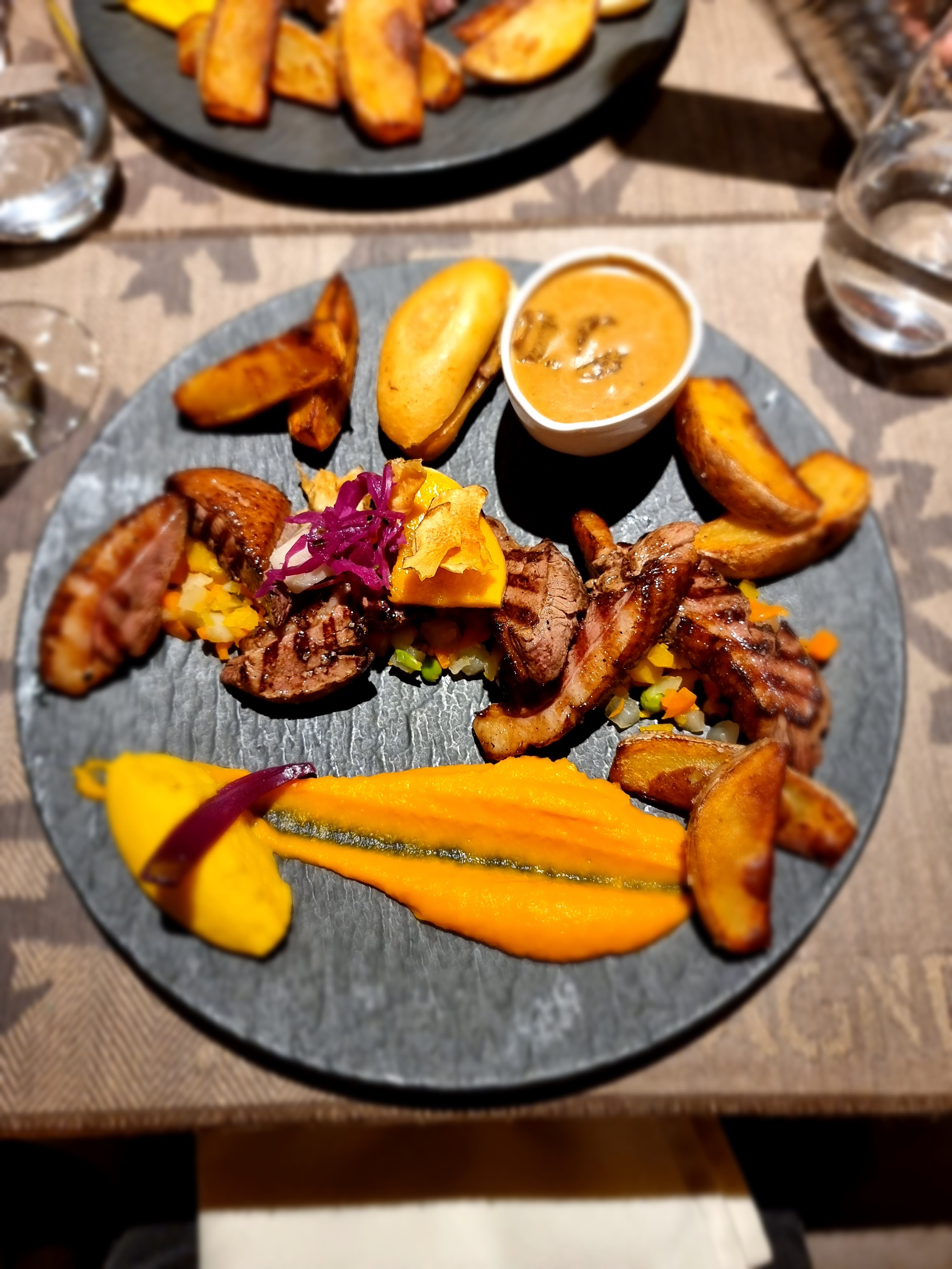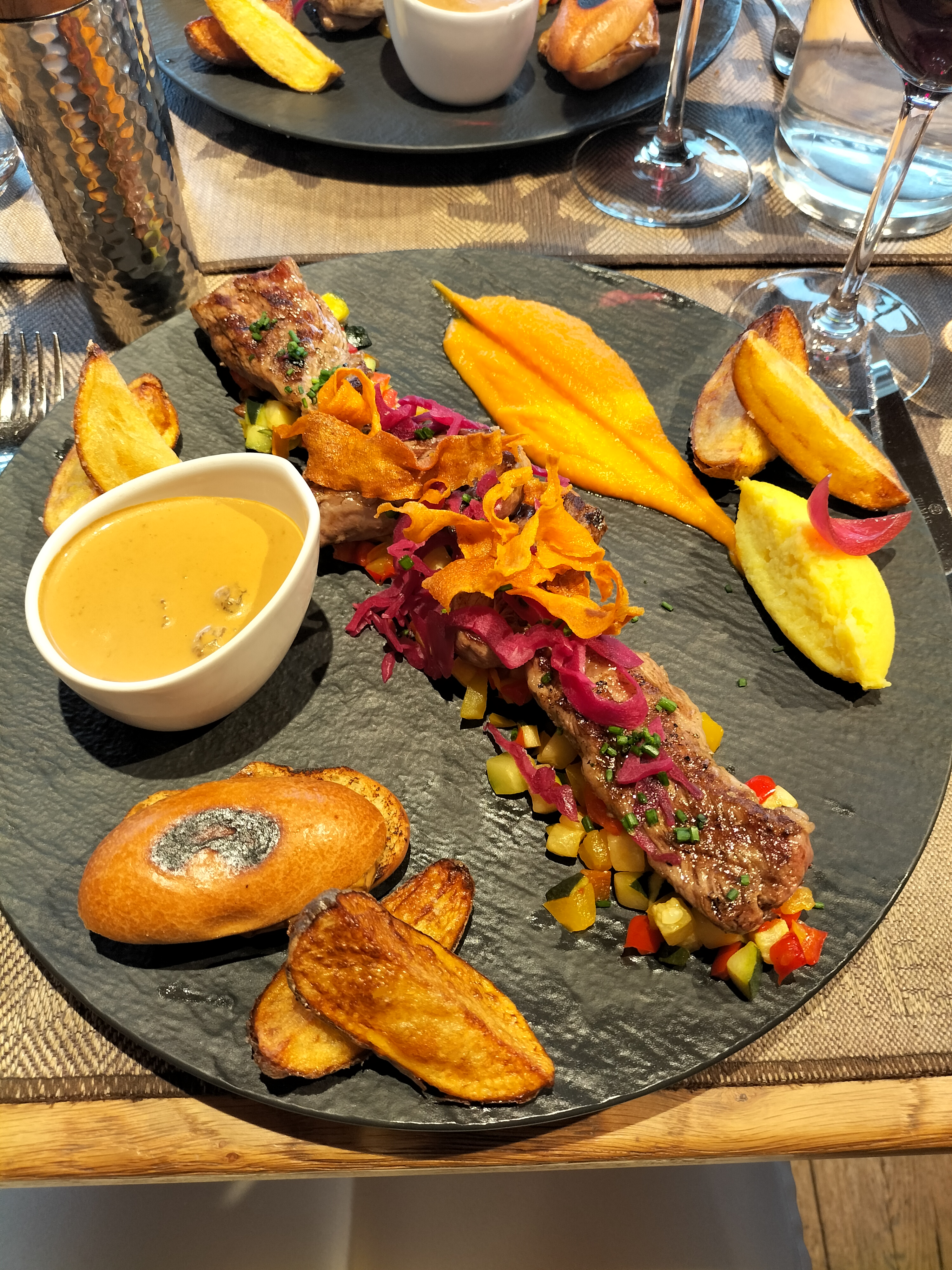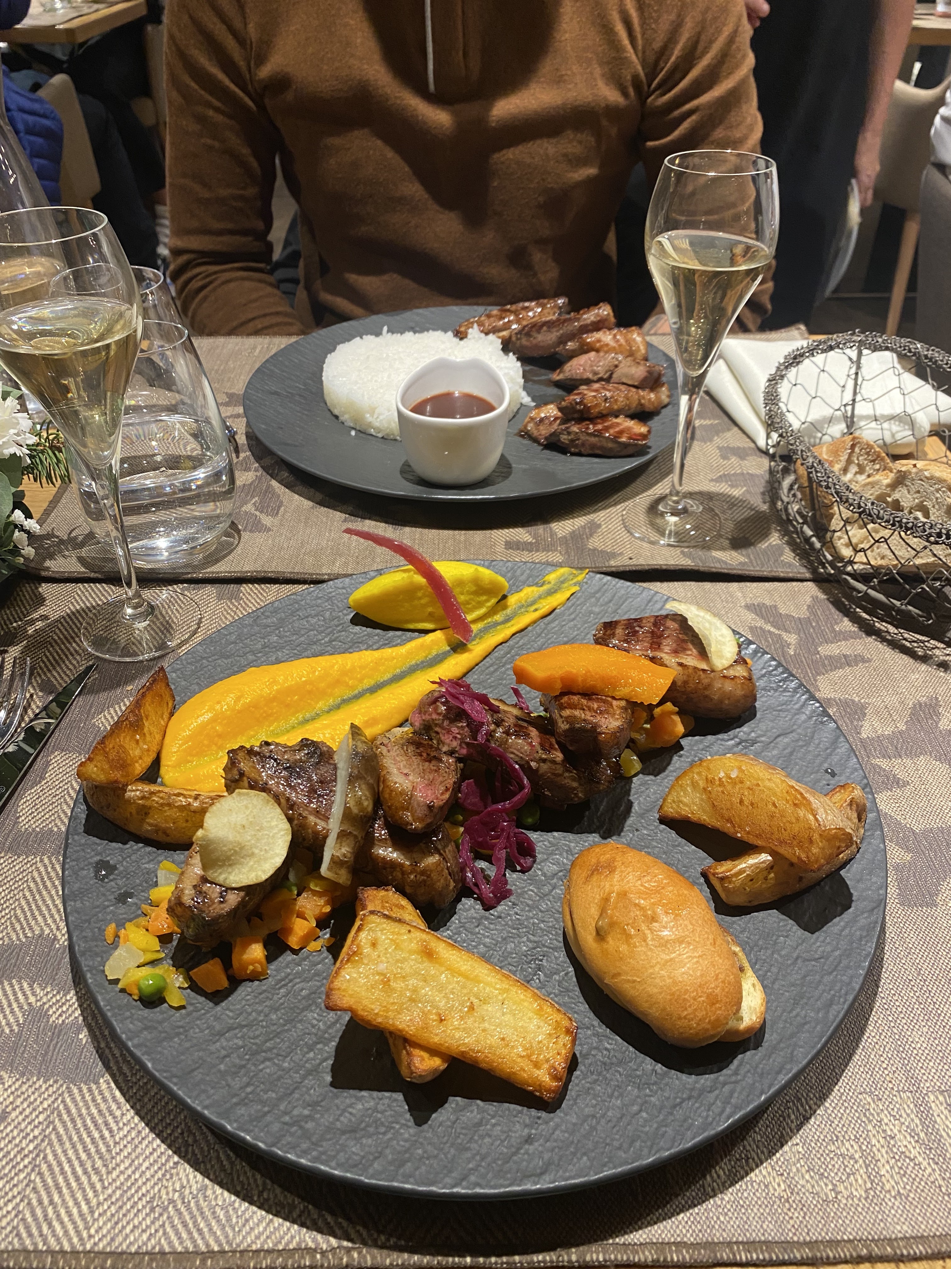 Plats délicieux et magnifiques. Service très agréable. Cadre splendide avec magnifique vue sur les montagnes. Très bon rapport qualité prix.