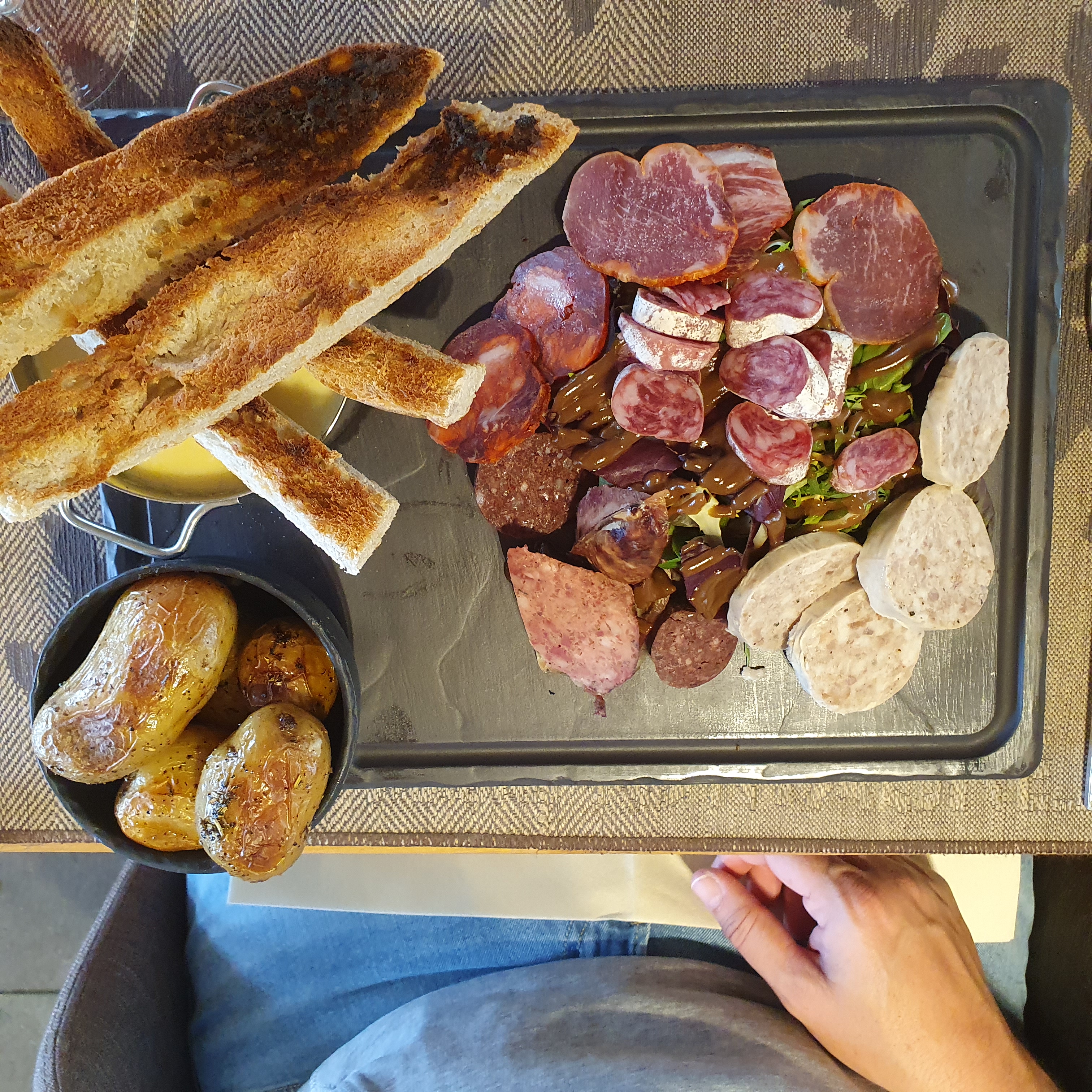Le service était tout simplement mauvais. La serveuse a apporté mon assiette sans me dire qu'elle était brûlante, je me suis brûlé le doigt et je lui ai dit, elle a ri et a dit qu'elle la portait avec une serviette pour qu'elle ne puisse pas savoir. Ensuite, nous demandons un remplissage d'eau, cela a pris 15 minutes et elle a apporté de l'eau gazeuse alors que nous buvions tout le temps de l'eau plate. Et dans l’ensemble, le personnel n’a pas répondu. La nourriture était bonne. Pas exceptionnel mais bon et intéressant, 4 étoiles. Mais le service était le pire que j'ai eu depuis longtemps
