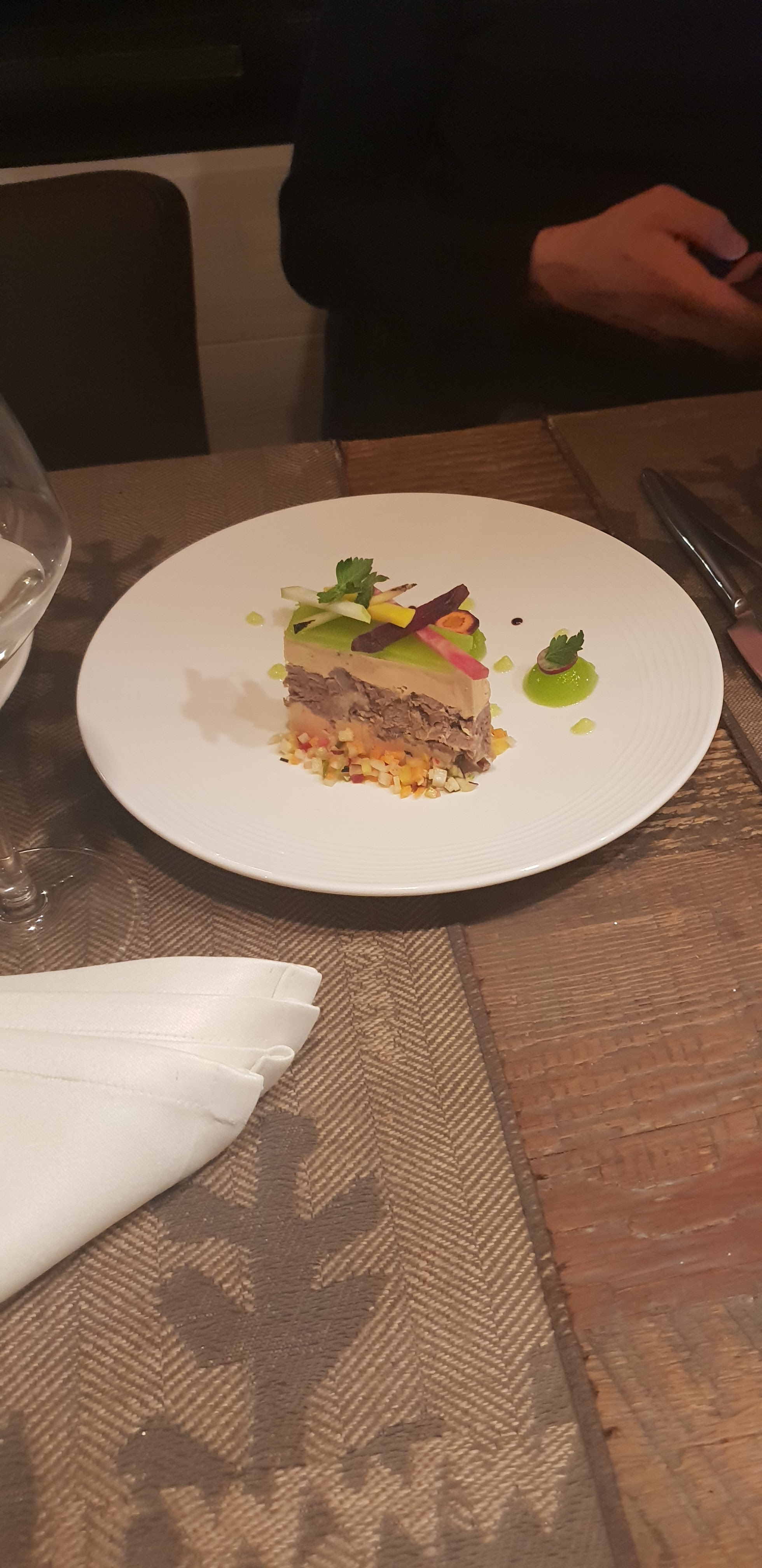 J'ai appelé moi-même la veille pour une réservation 2 adultes et 1 enfant, on me répond qu'il est possible pour 21h/21h30 ce qui fait juste avec un enfant en bas âge. J'ai laissé tomber. Mon conjoint étant dans la restauration, il appelle 30 minutes plus tard pour une réservation de 4 personne, on lui répond ok pour le service de 19h. Les enfants n'ont ils pas leur place ? Nous sommes comme même venu en disant que la 4eme personne ne viendra pas. L'entrée est pratiquement servi avec l'apéritif. Le whisky japonais : 2CL au lieu de 4 dommage au prix du verre il aurait été bien servi, un deuxième verre aurait était vendu ! L'entrée était excellente, très bien élaboré ! Pour les plats, déçu juste sur la viande : - Ris de veau : dommage il est servi dans un bol rempli de sauce et en morceaux. Pour ce type de viande il est préférable de le laisser en entier... On suppose qu'il est couper pour faire plusieurs assiettes, au vue du prix dommage. - Filet de boeuf : assez dur, nous doutons que sa soit réellement du filet. - L'assiette enfant : pate avec la pièce du boucher, les pâtes sont sèches aucune sauce. Cependant, les accompagnements étaient tres bien cuisinés !