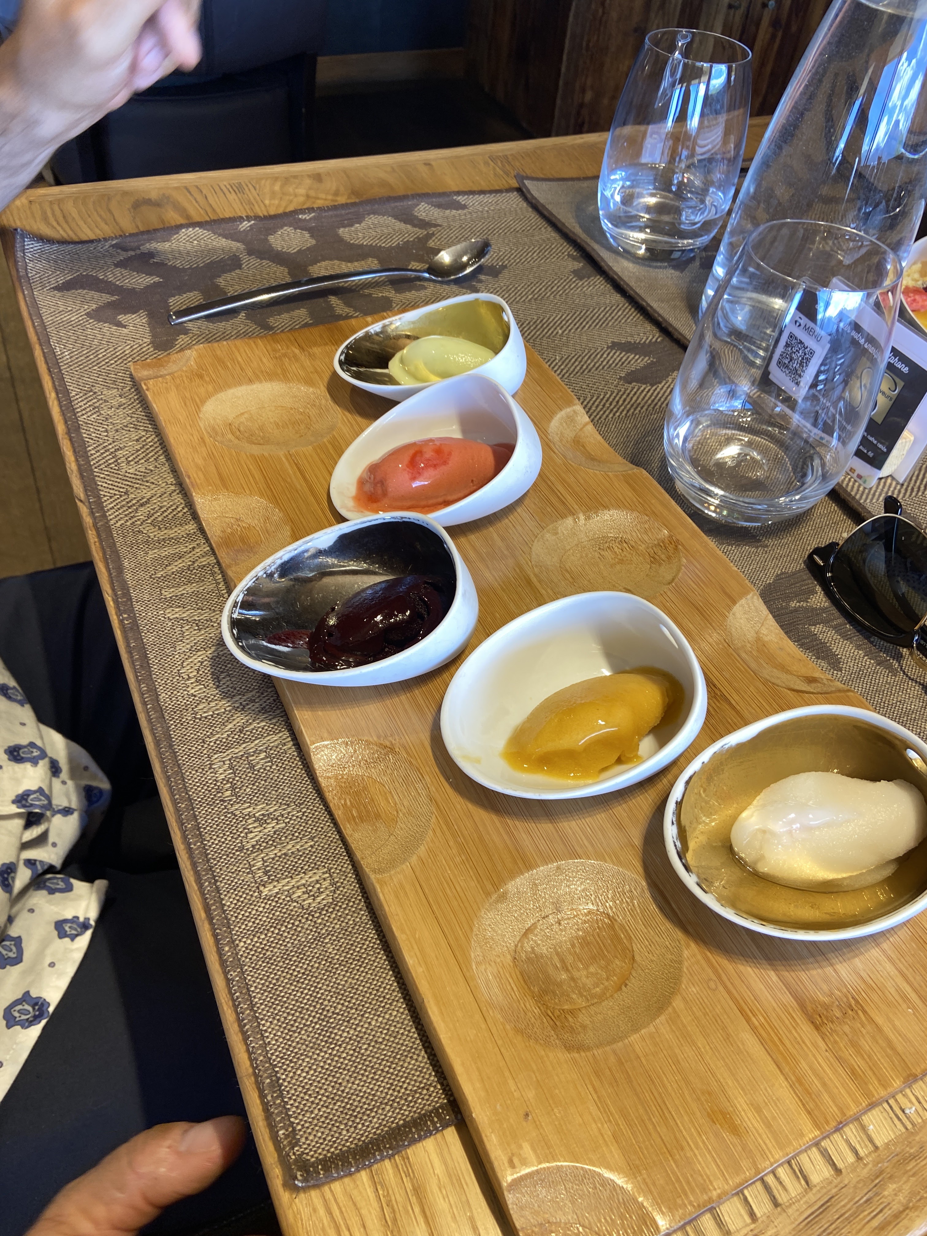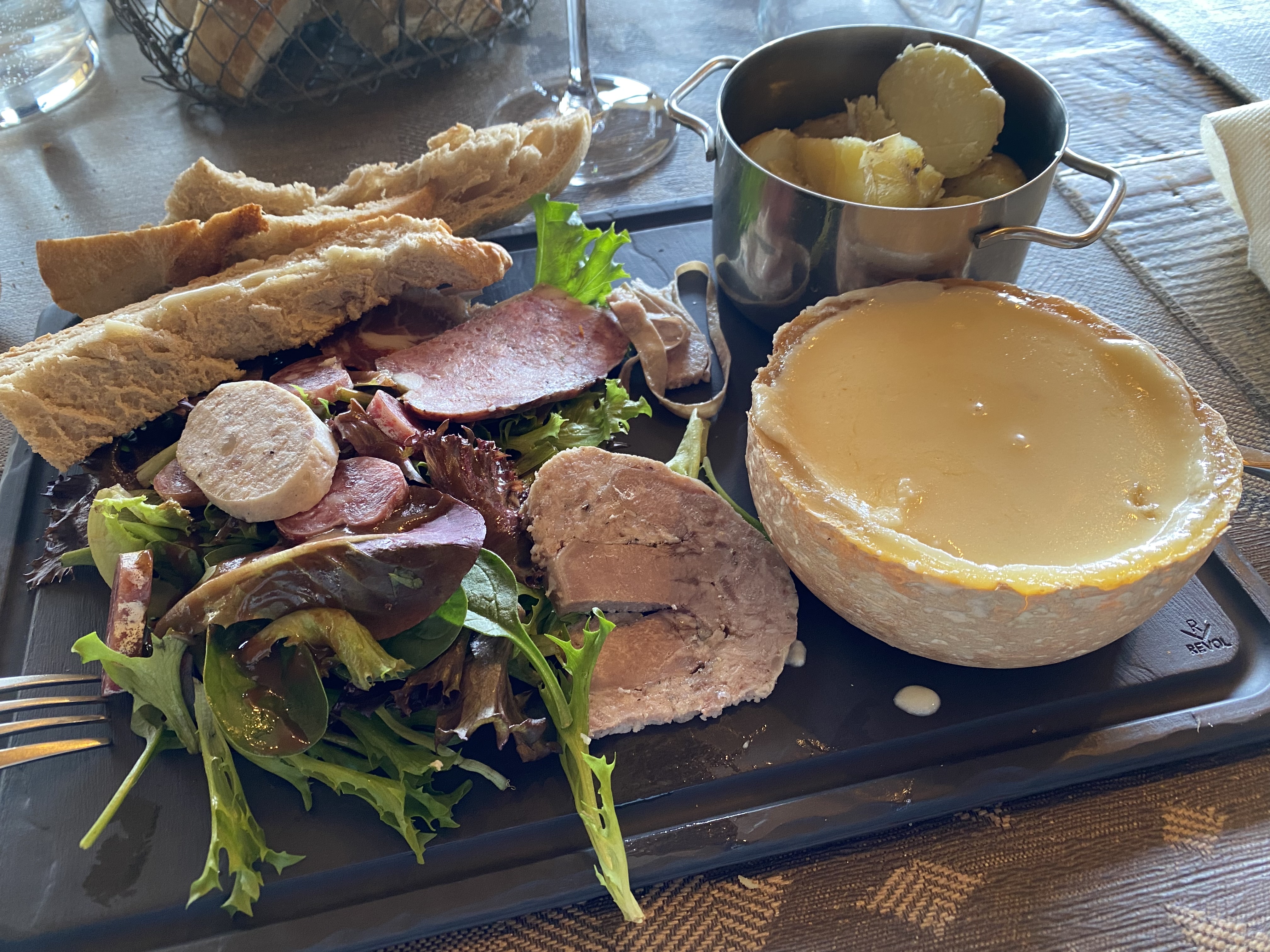 Bonjour, le cadre du restaurant est de type chalet en bois, c'est très chaleureux, installez-vous sur les tables hautes afin d'avoir une vue imprenable sur la vallée. Nous avons choisi le toudeille, 3 au lait de vache et 1au lait de brebis, qui n'est pas trop marqué, je conseille. Pour les desserts, la présentation du trio de pana cota est très originale, l'omelette norvégienne est plus simple mais ressemble à un hérisson, la shère 100% chocolat fond avec sa sauce chocolat chaud et le dessert à la fraise se présente en trois déclinaison, les saveurs sont au rendez-vous. L’ accueil et le service sont aussi des atouts de cet établissement, le personnel est très aimable et compétent. Bon à savoir: nous sommes arrivés tardivement (21h) et avec notre chien, cela n'a posé aucun problème. Petit bémol: les vins sont un peu cher mais de très bonne qualité. Je recommande et conseille cet établissement.