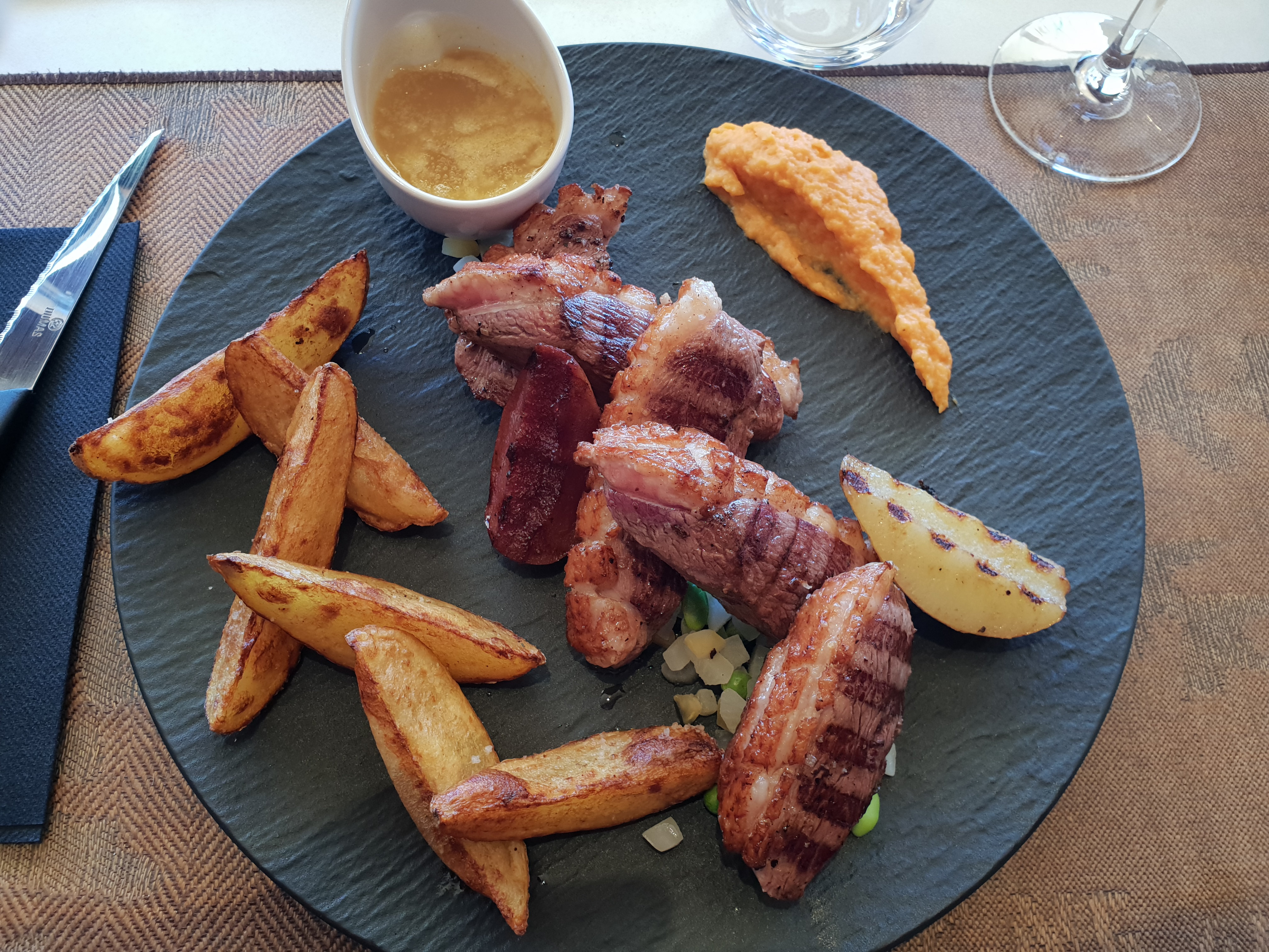 Plats, environnement et service au top! Une attention qui m'a plu: j'ai demandé une entrecôte bien cuite, on me l'a découpée 👍🏾