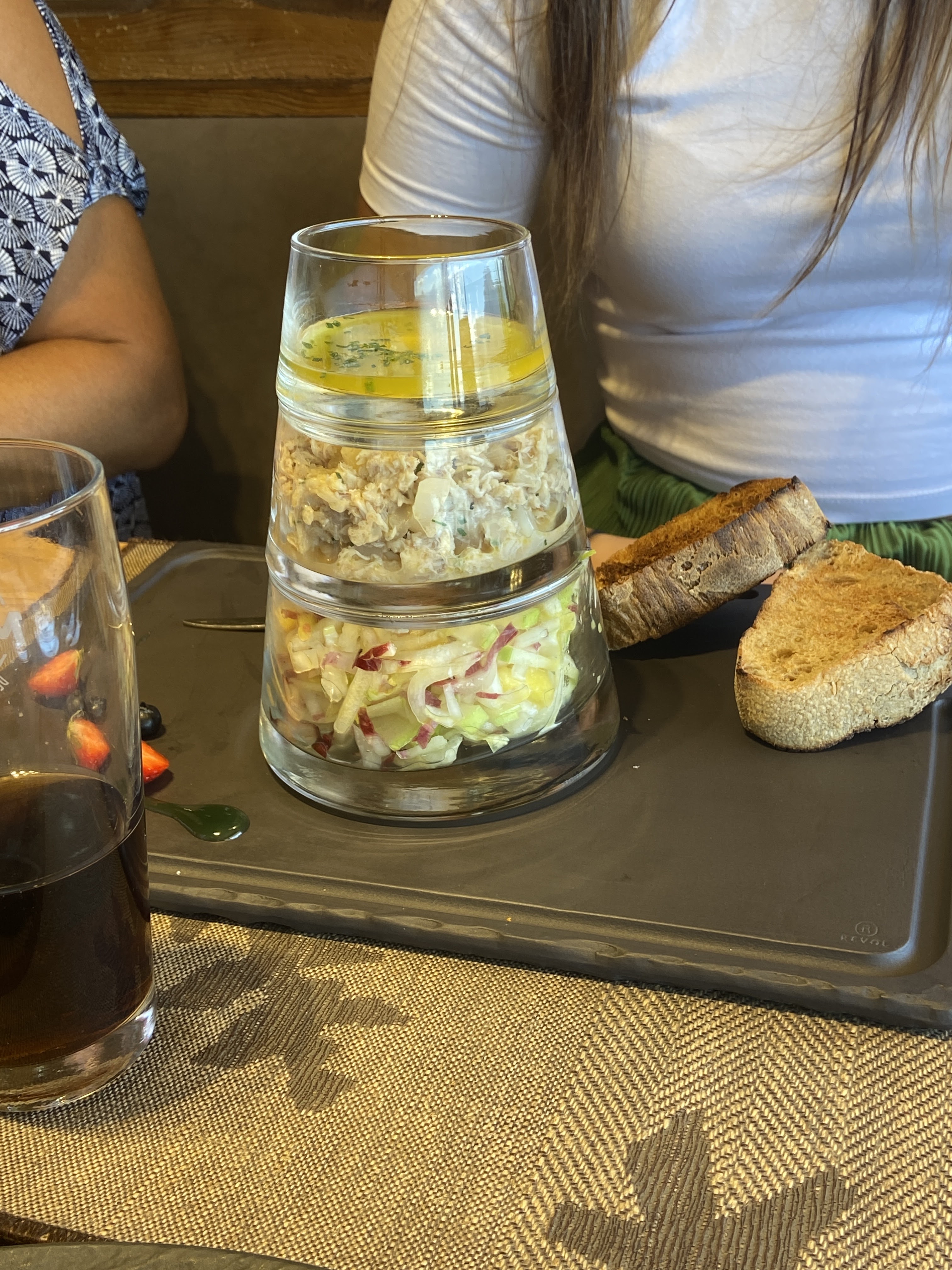 DE.....LI.....CIEUX 😋 Les plats sont copieux et TROP BONS ! Le service est rapide, le personnel agréable et souriant. Les prix sont corrects. Le cadre est agréable. Dommage que nous n'ayons pas pu voir la vue, il faisait nuit 😁 En dessert, j'ai pris la palette du pâtissier et j'ai été scotchée par la glace à l'ananas : un régal (alors que je n'aime pas l'ananas 😂).