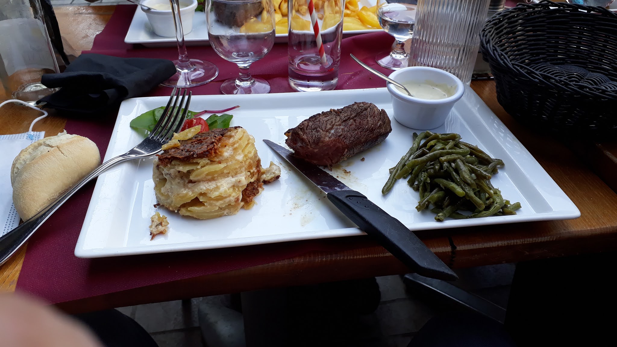Beaucoup de fourmis ont infesté le restaurant. C’est dommage. Service courtois, mais la nourriture aurait pu être meilleure. Ce n’était pas mauvais, mais pour le prix, je m’attendais à mieux. On y est allés parce que ma fille souhaitait goûter des escargots à l’ail. J’ai pris un steak saignant et j’ai goûté meilleur…. Ailleurs. Le gratin dauphinois était très bon.
