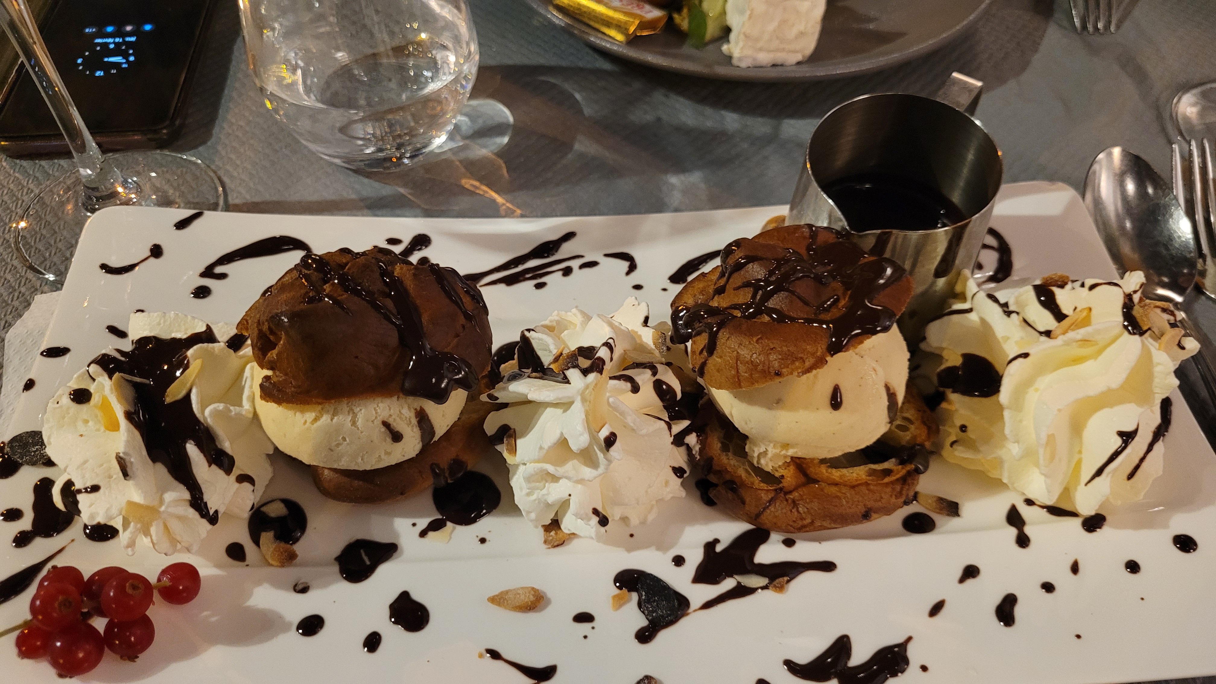 Très bon, fait maison. Super framboisier (ou fraisier) et repas trop copieux. Le personnel t’oubli un peu mais dans l’ensemble c’est très bon.
