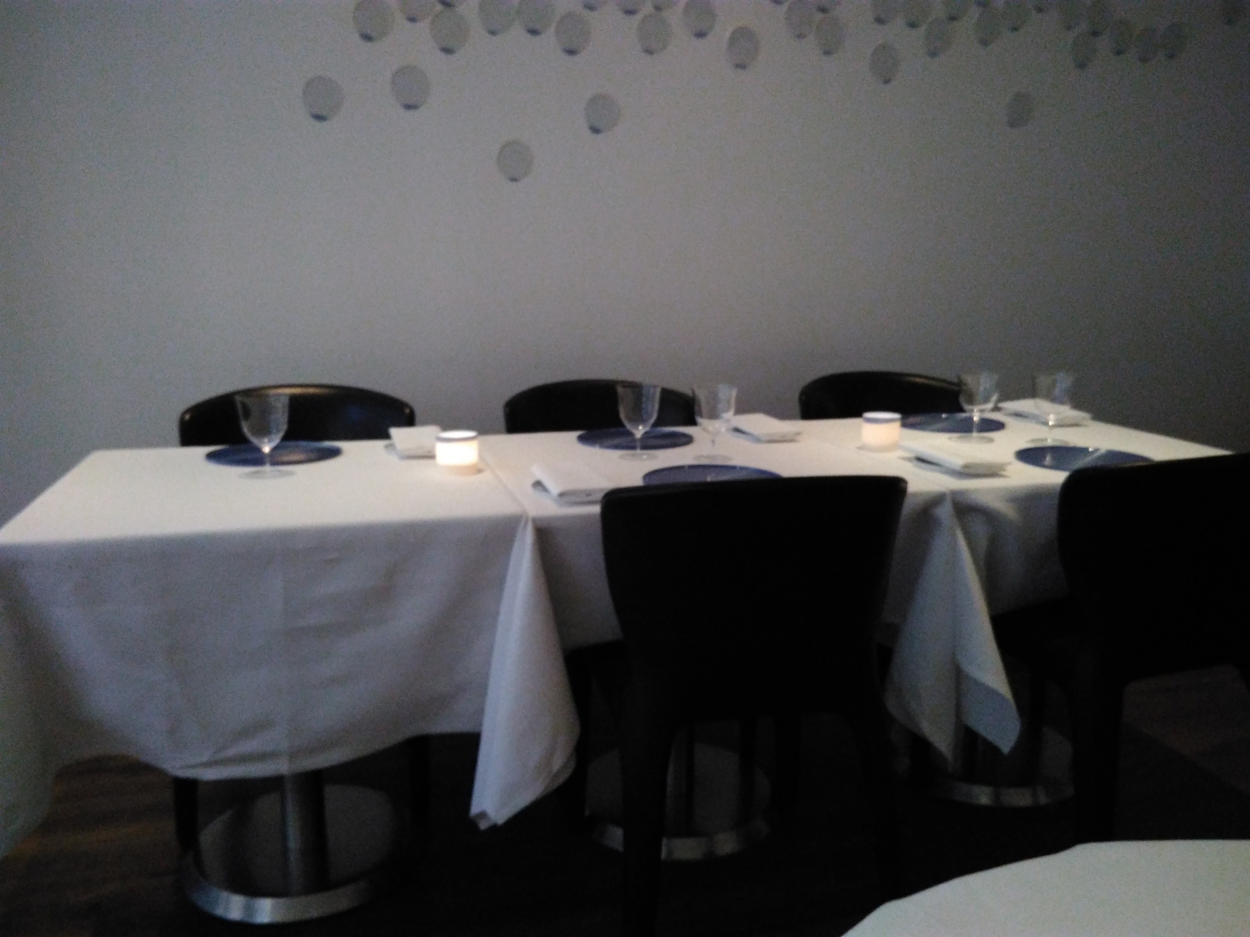 Nous étions venus pour passer un bon moment en tête à tête et la salle était si bruyante que nous pouvions à peine nous entendre. Un vrai scandale! Du coup le dîner passe au second plan. Déco de la salle vraiment basique et froide..blanc sur blanc... Addition particulièrement salée!