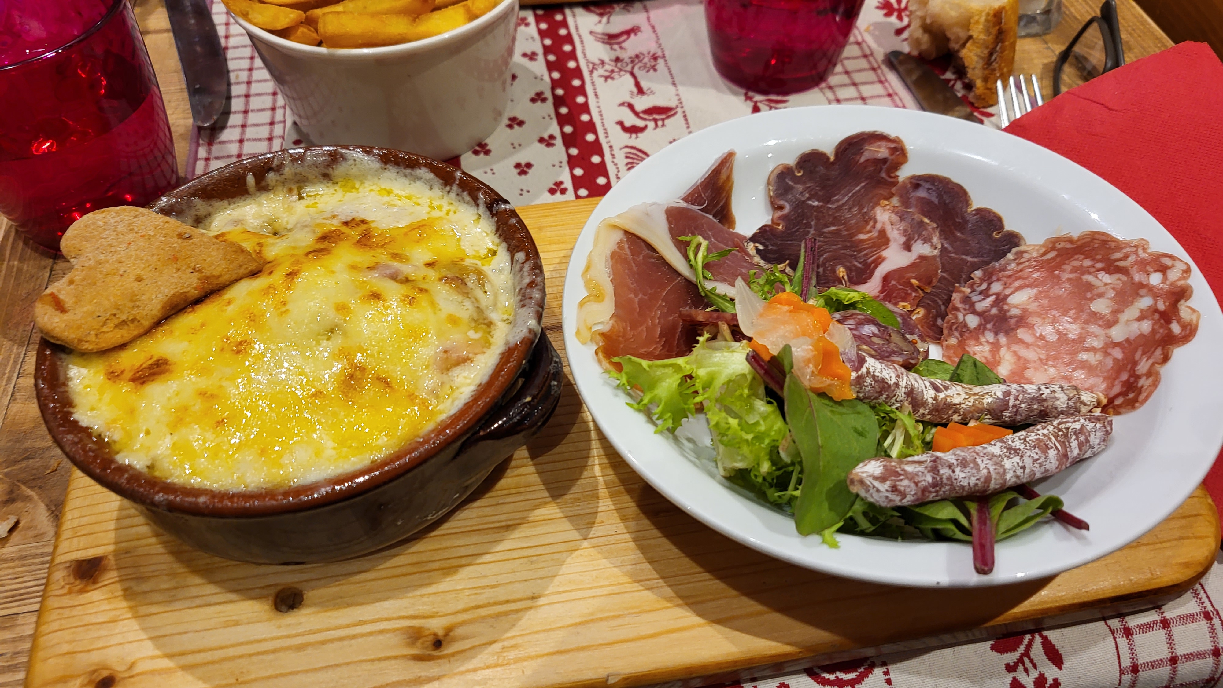 À Valmorel, nous avons été bien reçus et avons bien mangé partout où nous nous sommes arrêtés, mais notre coup de coeur revient définitivement à La Table du Berger où la porte nous a été ouverte avec le sourire contagieux de Benji alias Monsieur Rigolo, ce malgré une arrivée (très) tardive au retour des pistes. Nous avons si bien mangé (et bu, les cocktails aussi valent un stop !) et avons été si bien reçus que nous sommes revenus. Deux déjeuners au top, une équipe sympathique au possible de la salle à la cuisine jusqu'au berger chapoté, et cerise sur le gâteau déjà bien beau : une raclette à emporter pour le réveillon du 24 , avec la vraie machine, des rations de rois, que dis-je, d'empereurs, le tout à tomber, bref, une adresse et une équipe incontournables ❤