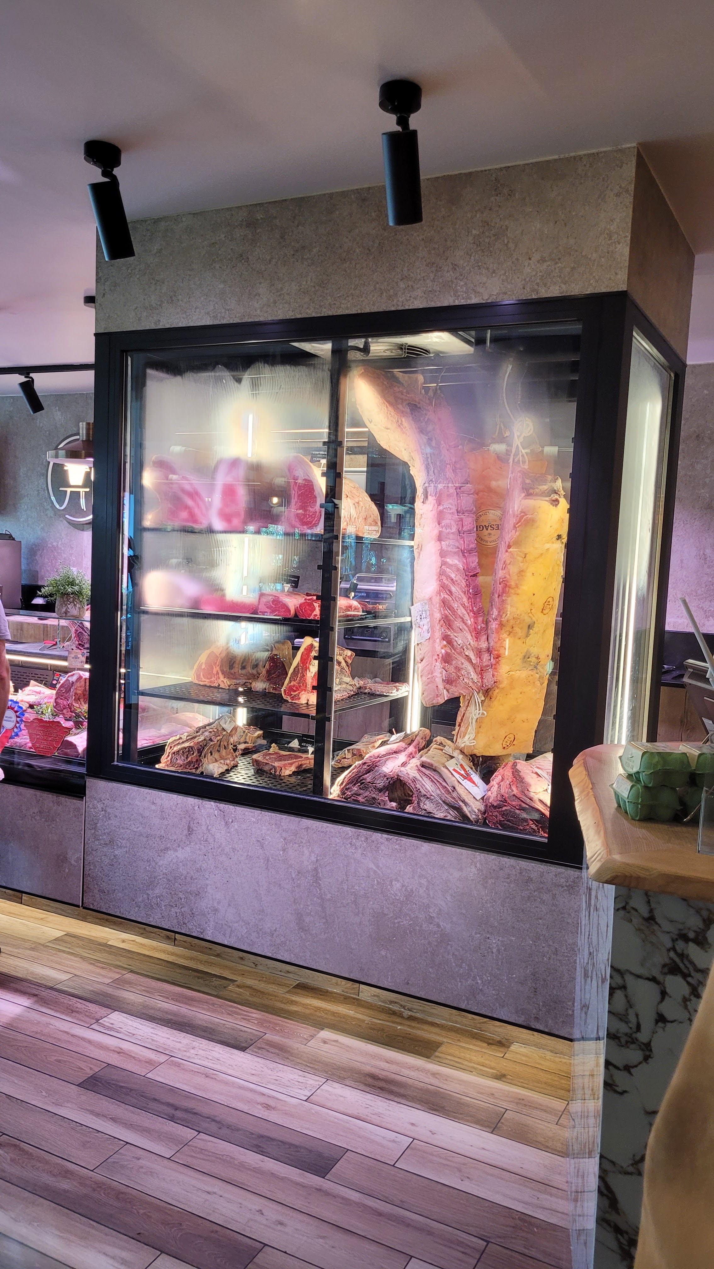 Boucherie ouverte tant que le resto est ouvert c'est bien Le restaurant est spécialisé dans le bœuf de plusieurs pays avec des prix en fonction du morceau