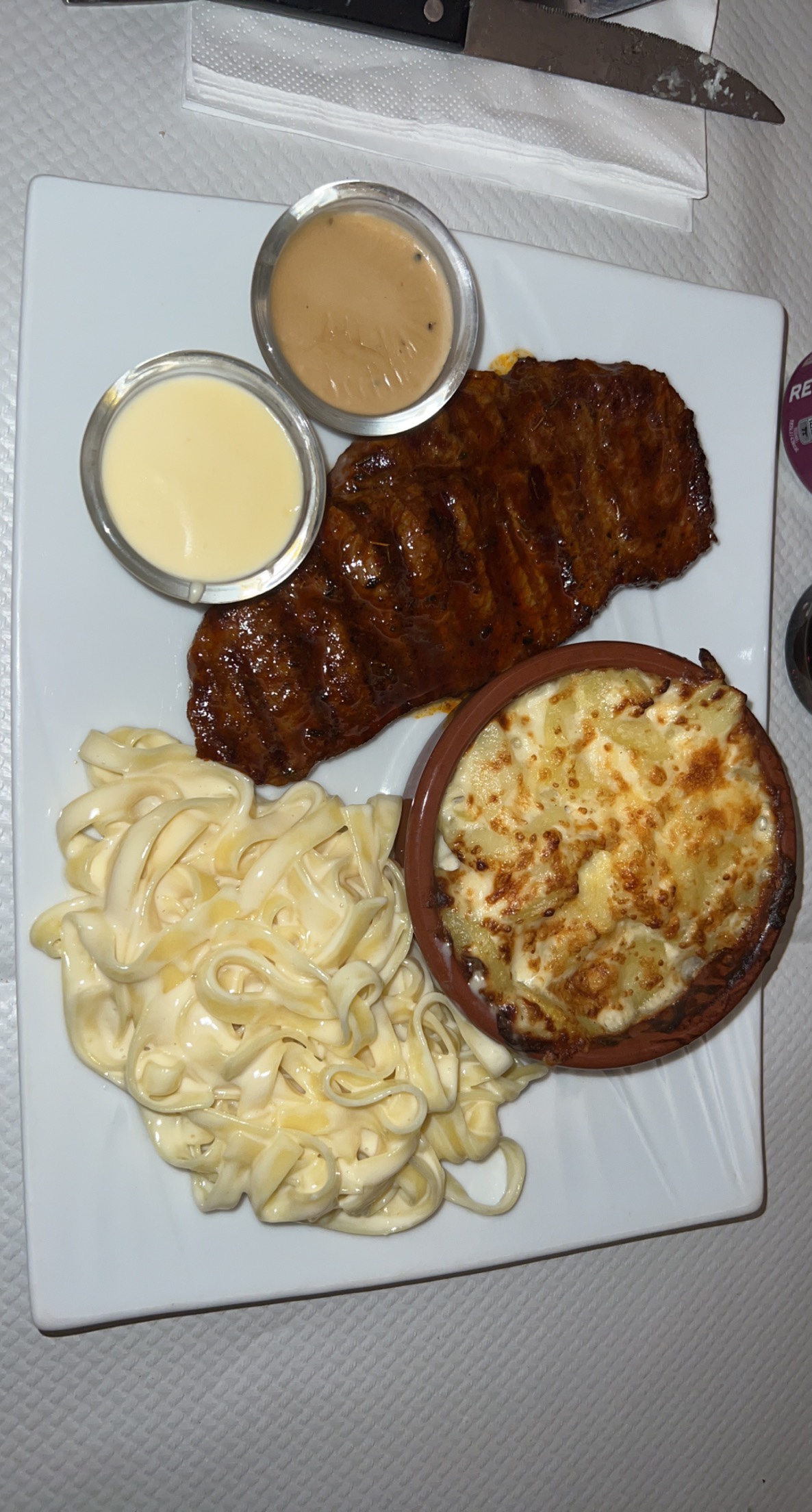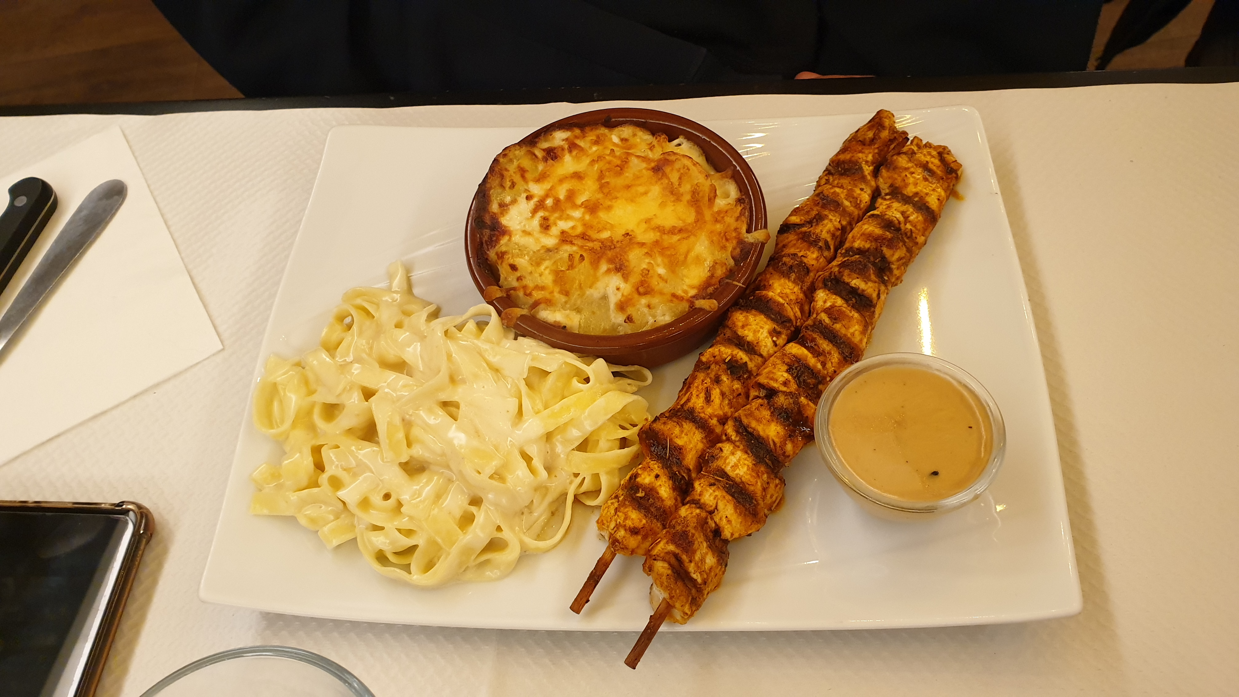 J'ai beaucoup aimer la viande été juste suculante avec la marinade, le gratin aussi. Concernant le personnel juste parfait très aimable et serviable. Si vous chercher un endroit tranquille ou mangé je recommande..
