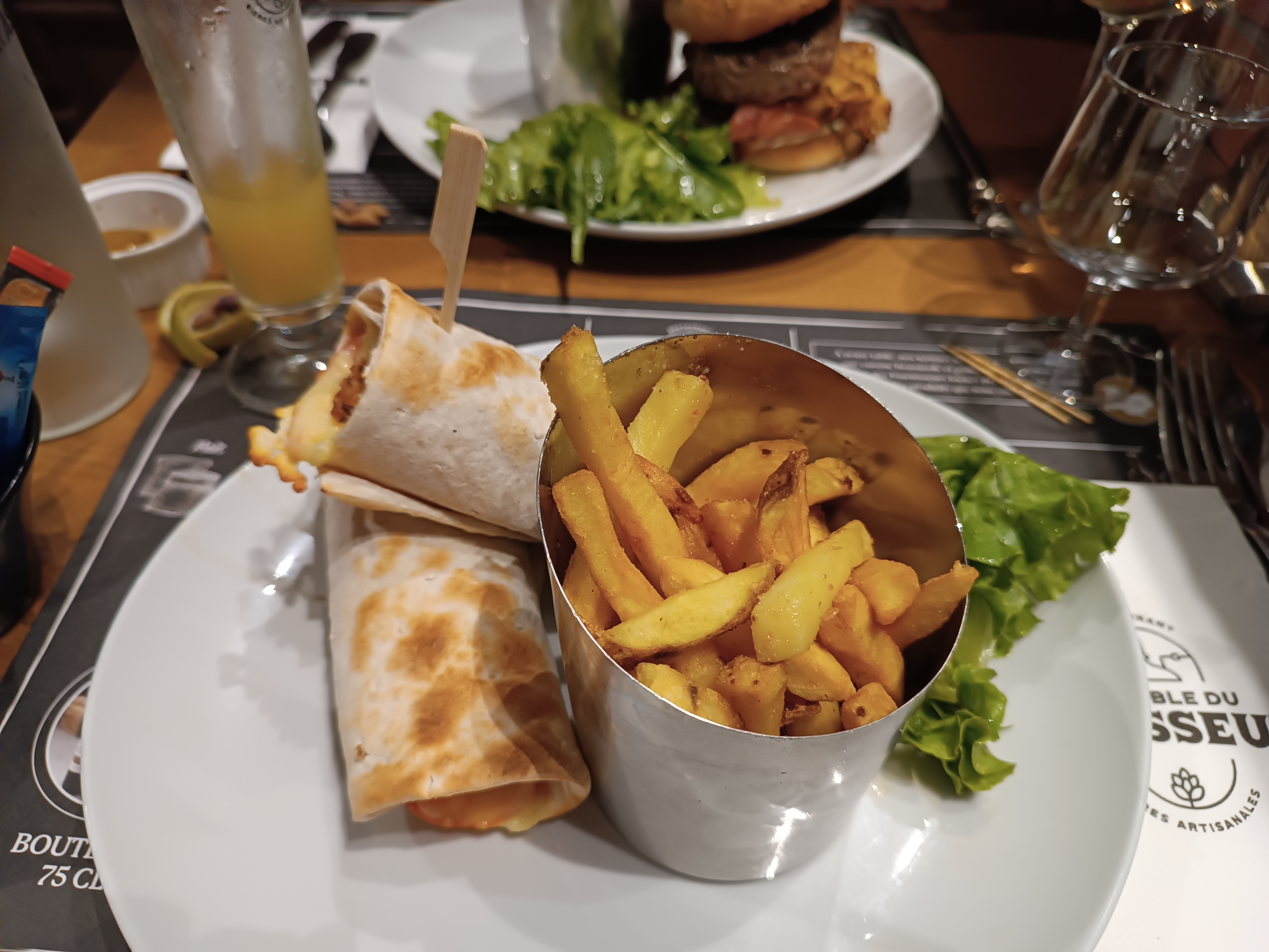 le repas était bon jusqu'à ceux qu'une enfant vomisse a côté de nous et qu'aucun membre du personnel ne réagisse, nous n'avons pas été changé de table malgré les odeurs de vomis nous sommes donc partis sans finir notre plat