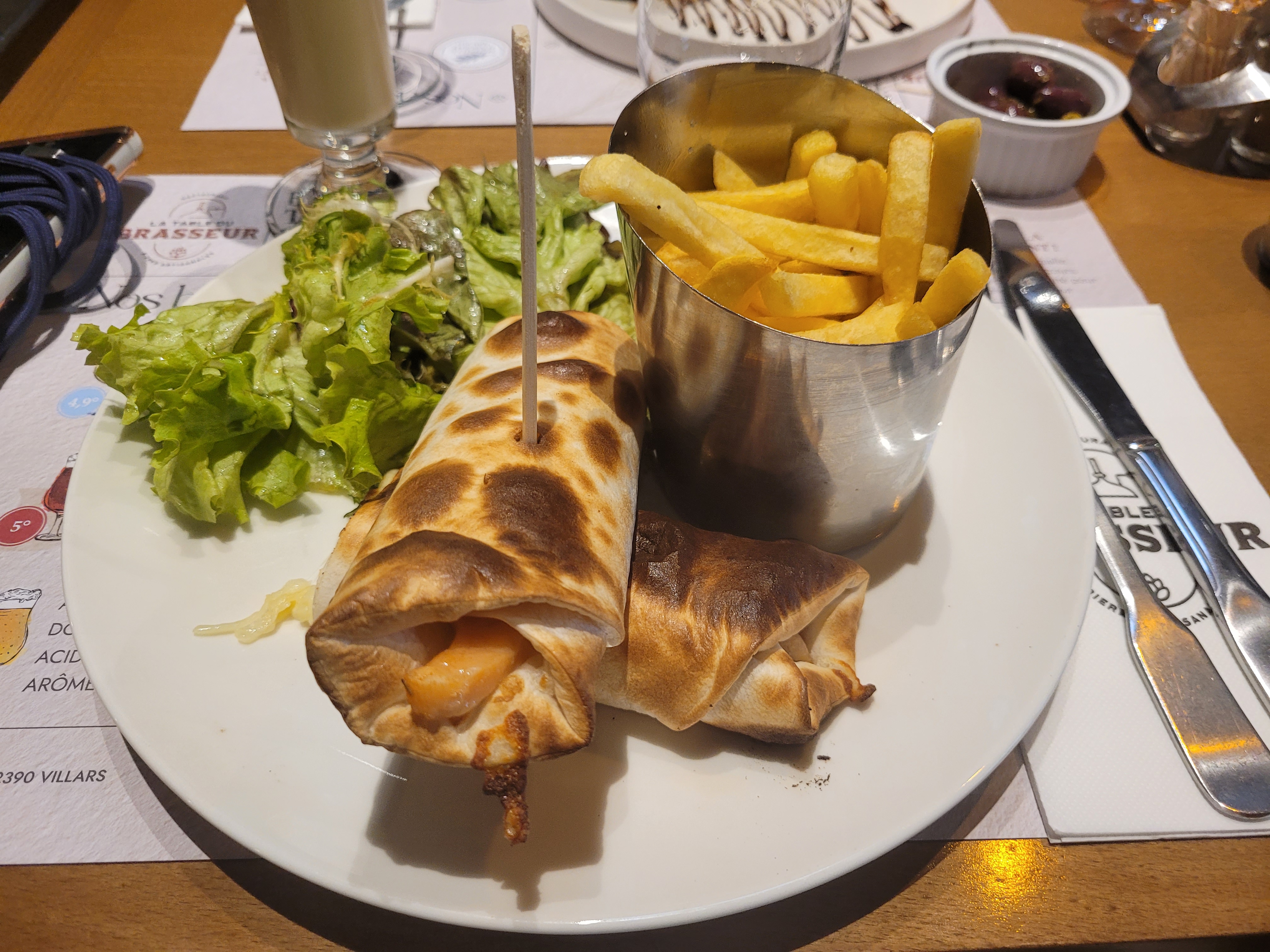 De retour en Savoie nous étions certainement les derniers clients retardataire nous avons pu déjeuner avec gentillesse on nous a bien reçu . nous avons pris un steak tartare qui était parfait avec des frites et une salade. Ne voulant pas être trop long ne m'a pas pris de dessert un petit café