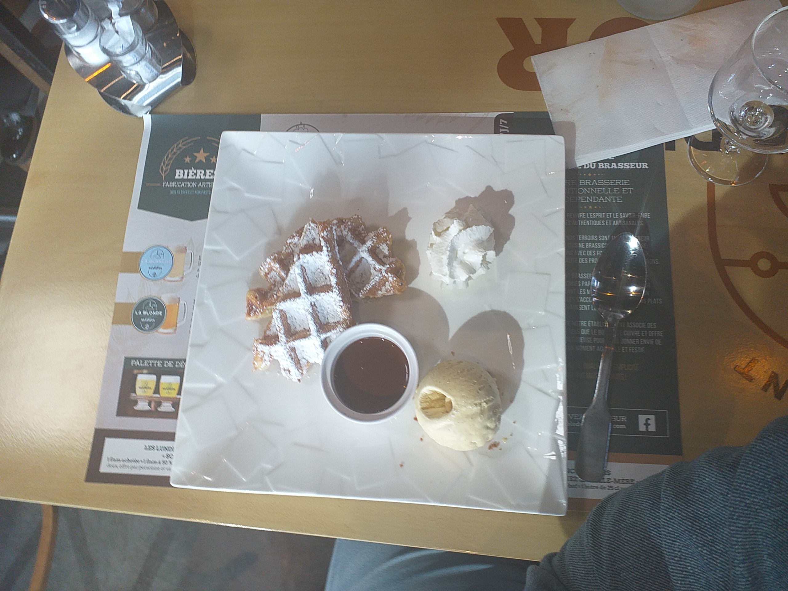 Petit repas en famille avec les grands parents. Burgers pour les jeunes. Choucroutes, fish and chips et tarte flambée pour les plus vieux. Desserts ensuite. Tout est bon et copieux. Tout cela arrosé d'une palette de bières : 4 verres de bières de 15cl (blanche, blonde, triple et rouge). Un bon moment partagé avec des serveurs sympathiques.