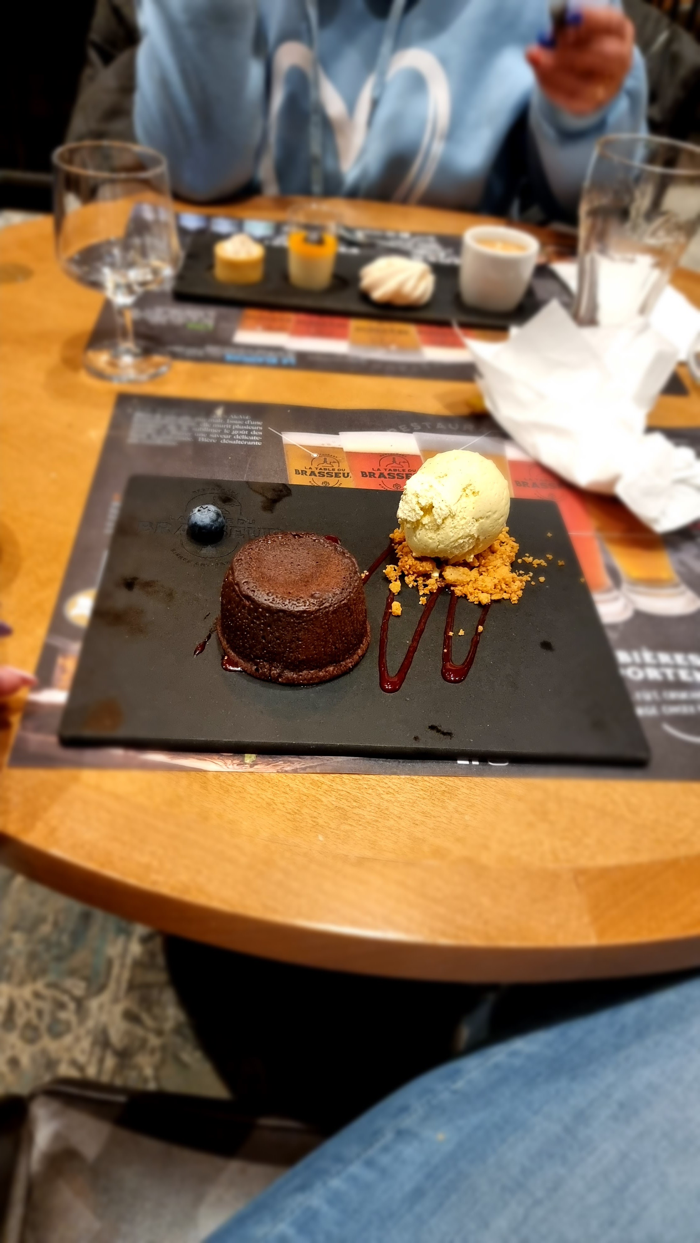 Très bon accueil. J'y suis allée avec une amie. Le cadre est magnifique et spacieux. La bière rouge, un régale. Nous avons pris le plateau de fromages en apéritif, ce fut goûteux. En plat, j'ai choisi l'entrecôte saignante, un vrai régale (très bien assaisonnée). En dessert, j'ai pris les profiteroles, elles étaient très bonnes, le chocolat n'était pas écœurant du tout... Le service était rapide et chaleureux ! Le seule bémol est l'addition qui est un peu salée... Très satisfaite de mon passage chez vous, je reviendrai et je conseil à tout le monde d'y faire un petit tour !