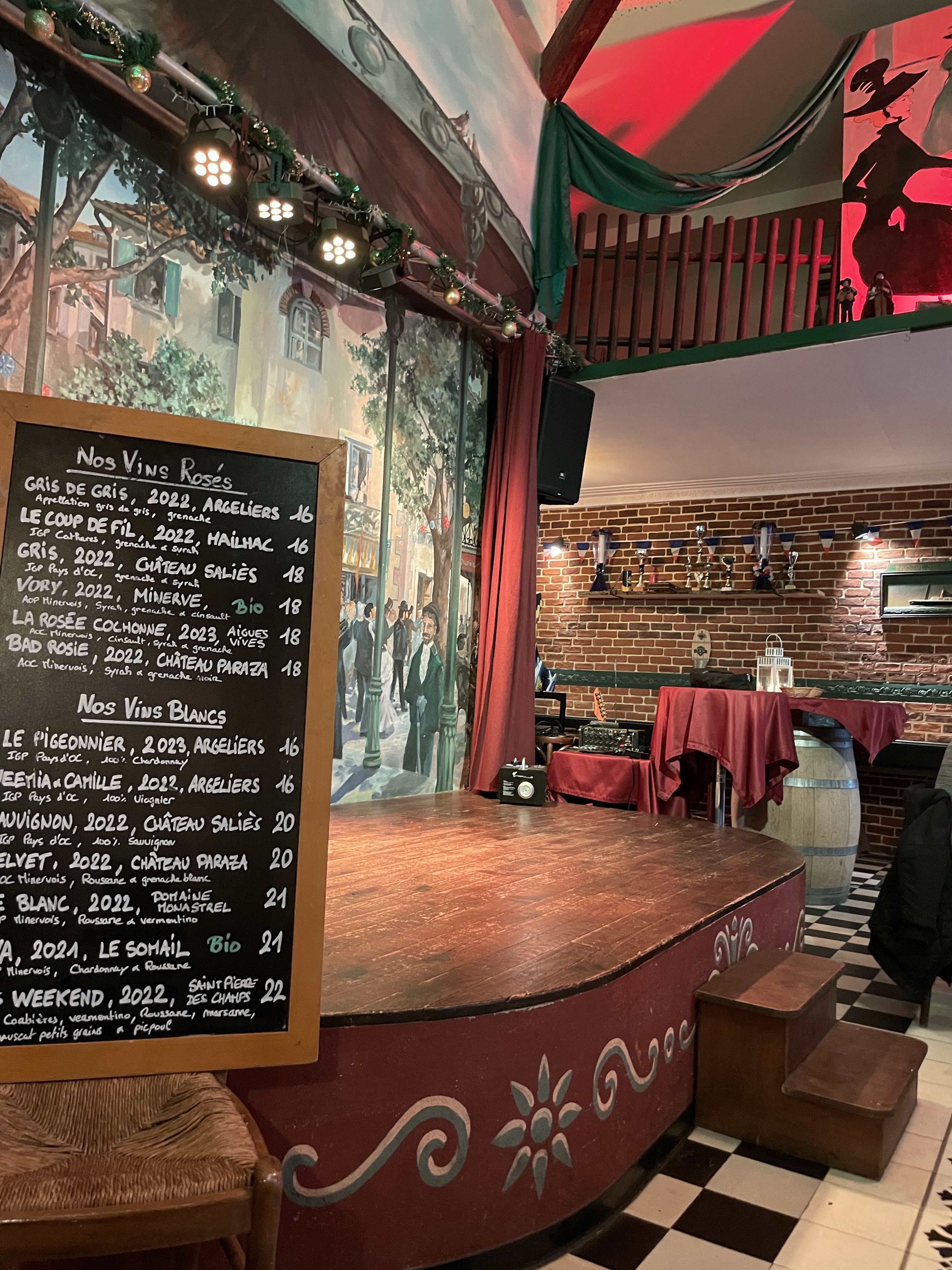 Dîner en famille pour clôturer l'année 2023. Quelques jours plus tôt, le gérant a eu la gentillesse de m'accueillir et de prendre ma réservation alors que je passais à l'improviste. Ambiance très sympathique sur des airs de variétés françaises, décor d'inspiration café-concert, des plats délicieux avec des présentations parfois originales, des paniers à frites servis à part pour offrir plus d'espace, sans oublier la sélection d'un vin rouge bio très prestigieux du Minervois. La banquette était abîmée par endroits, et nous nous sentions un peu à l'étroit assis près d'un comptoir encombré, mais rien de trop perturbant en somme. Très bonne continuation à l'ensemble du personnel !