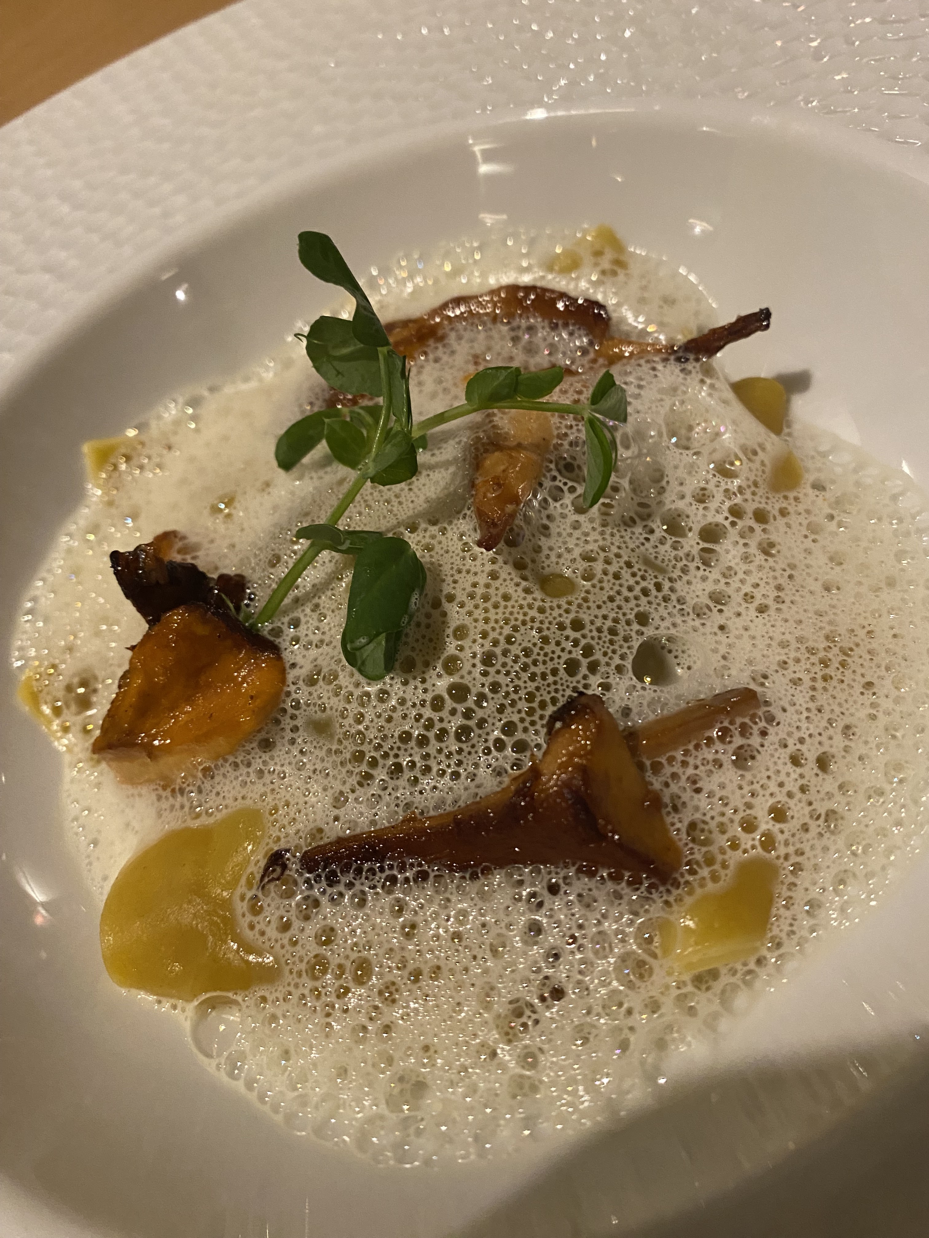 J'ai eu le menu 5 plats. L’excellente combinaison avec l’expérience des accords mets et vins était incroyable. Super ambiance devant la cheminée. Le service était impeccable, le sommelier avait une bonne histoire pour tous les vins ! Je recommande vivement ce restaurant 🙂