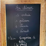Tres belle découverte avec un menu surprise le soir. Les plats sont très bons. Entrée, poisson, viande et dessert. Ils s'adaptent quand même en fonction des goûts et allergies éventuelles. Peut être rajouter une mise en bouche au départ. On reviendra très vite.