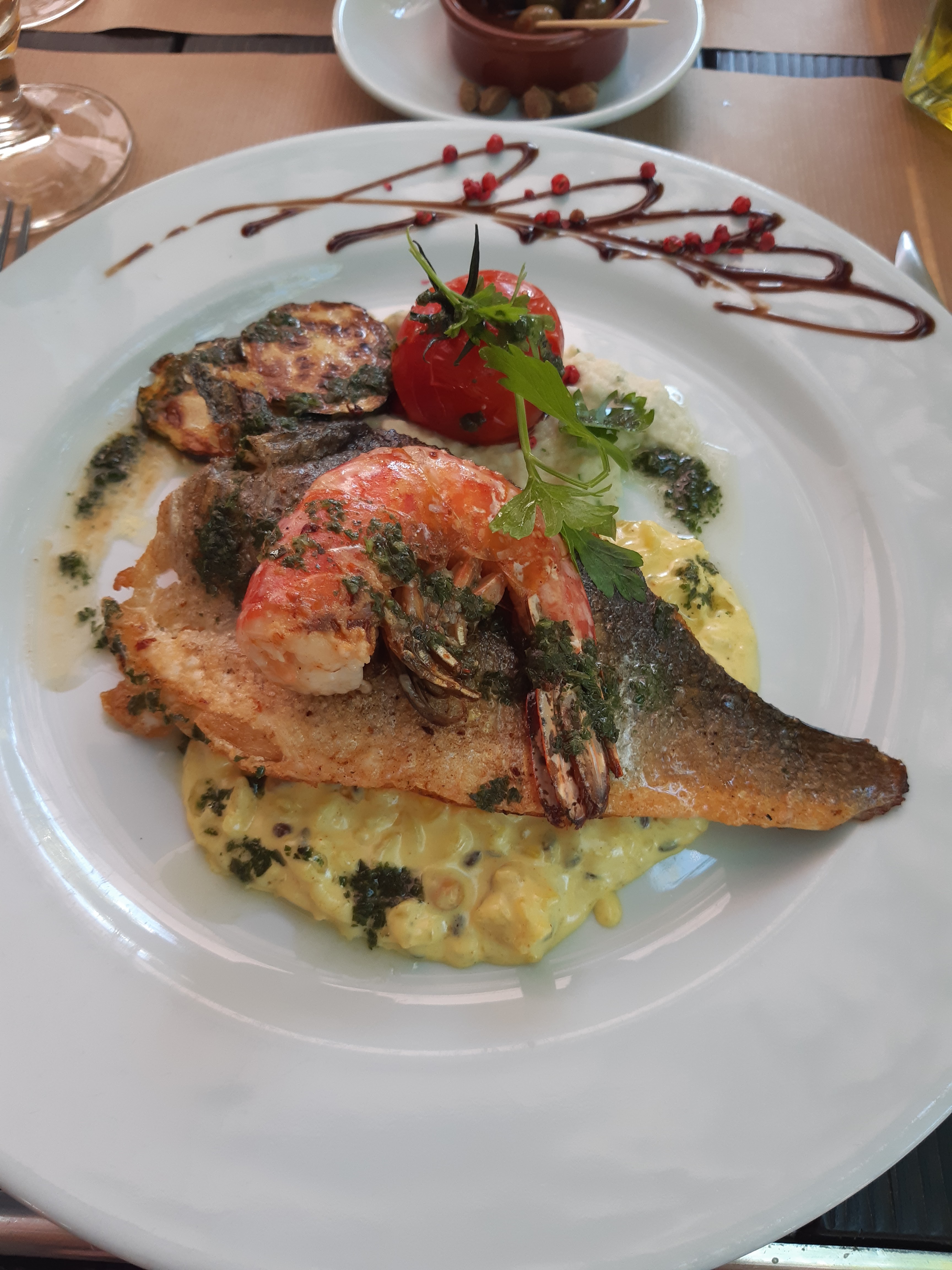 Très bien placé, accueil service au top !!😊😊 Les plats bien présentés, les gambas et le pti risotto un délice la cuisson rien à dire. Conseil en vin satisfaisant. Très bonne soirée. Eux🤔🤔🤔 oui a très bientôt 😊😊.
