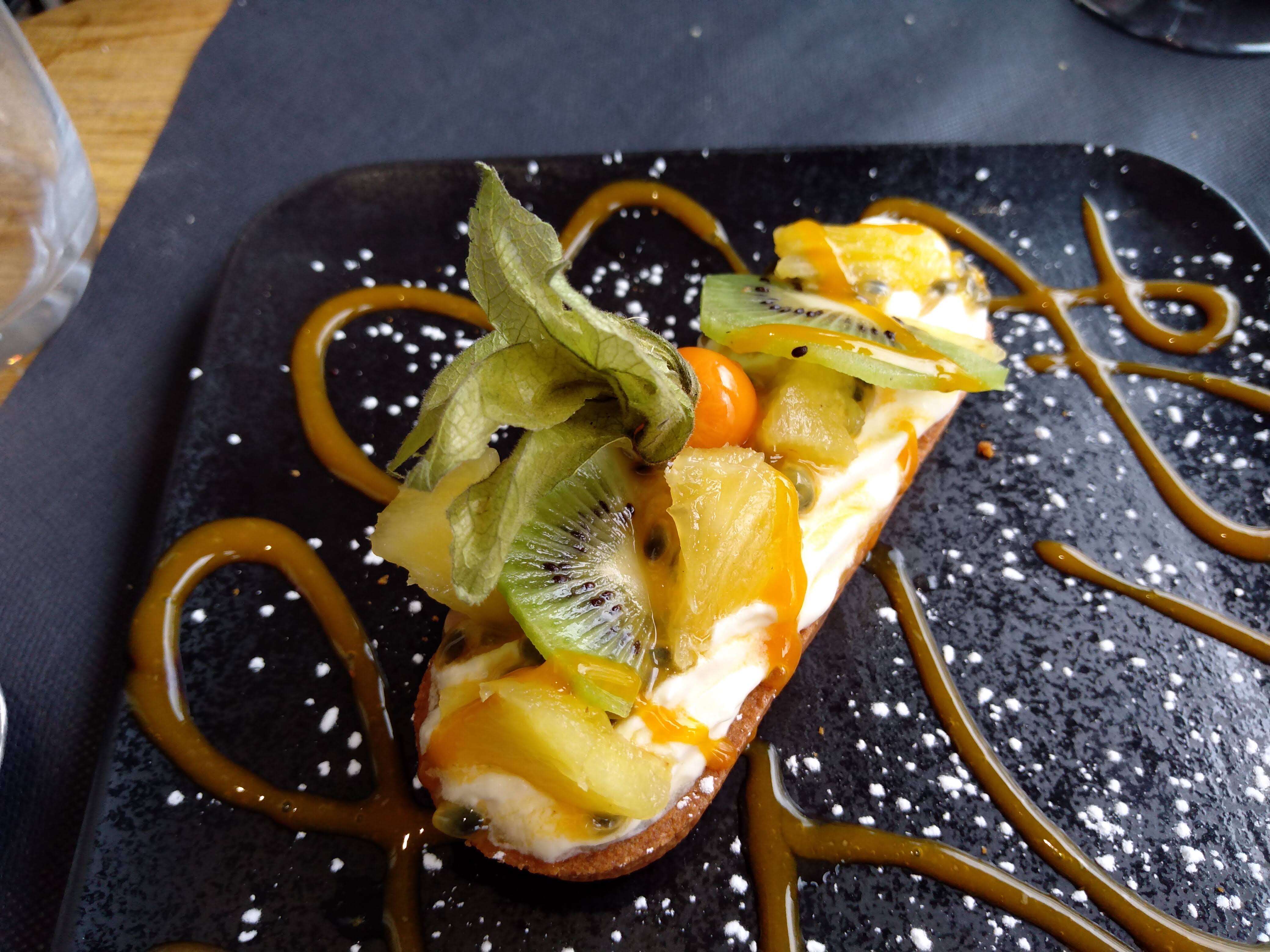 Cadre accueillant et personnel agréable. Le petit apéritif est très bien cuisiné. La brochette aux noix de Saint-Jacques était goûteuse mais tiède… En ce qui concerne le plat avec la brochette de bœuf, la viande aurait pu être légèrement plus tendre. Saumon de qualité. Pour les desserts, rien à dire. Le dessert avec les fruits à foison, accompagnées de 3 boules de sorbets, est vraiment très bon et fort copieux (on ne dirait pas sur la photo ci-jointe mais l'assiette est fort creuse). Pour le dessert avec la tarte en forme de bateau (beau dressage), le caramel et le chocolat se marient parfaitement. Dans l'ensemble, c'est un bon restaurant ! Je recommande.