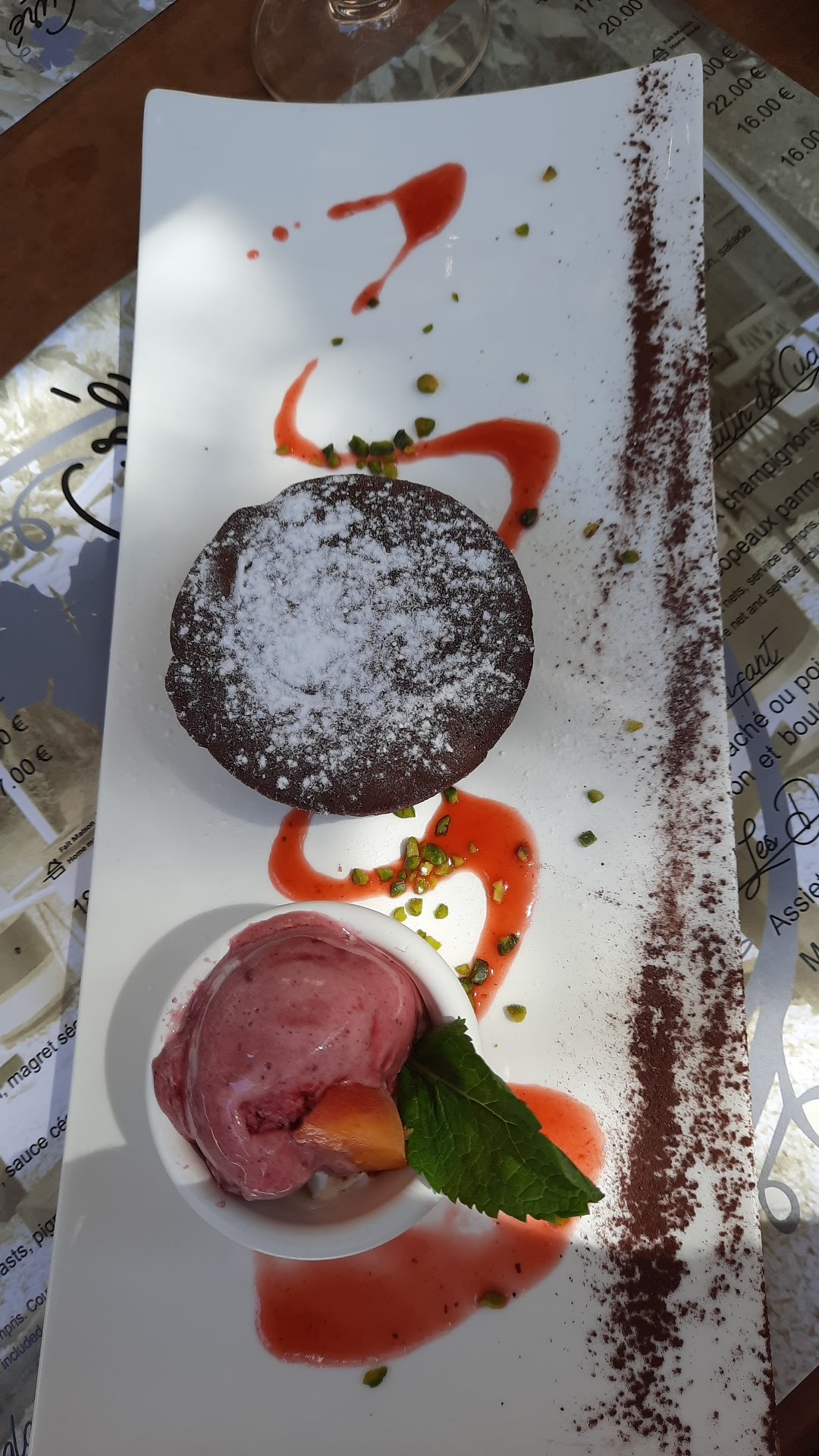 Nous sommes venu manger ce midi et c'était très bon et beau le plat comme le dessert. A l'abri du soleil et de la chaleur, cadre parfait. Service irréprochable et humoristique Nous recommandons.