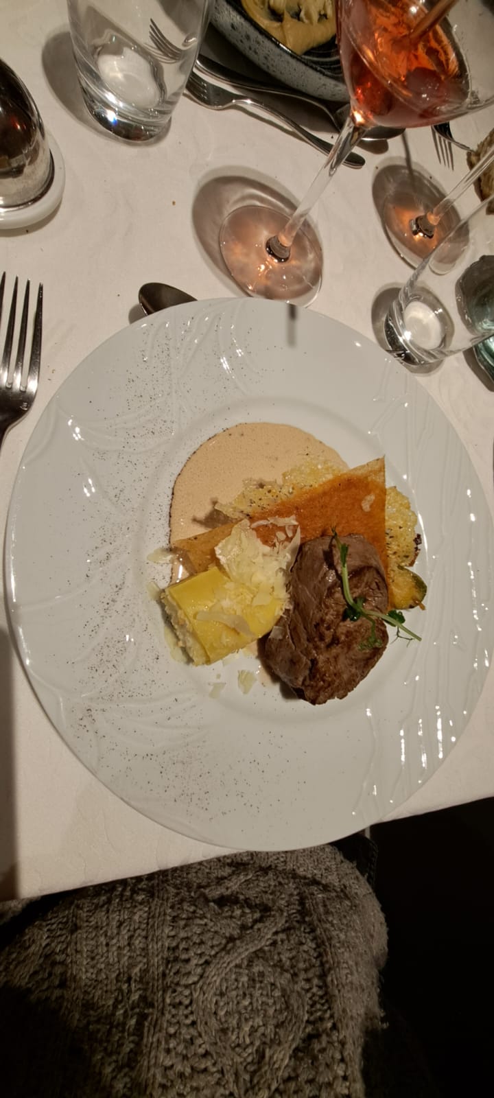 Très bonne soirée à ce restaurant. La vue est à couper le souffle. Les serveurs semblaient un peu sous tension au début. On a du les solliciter pour passer commande. La cuisine était bonne. Le plat principal manque un peu de légumes. Globalement une bonne expérience !