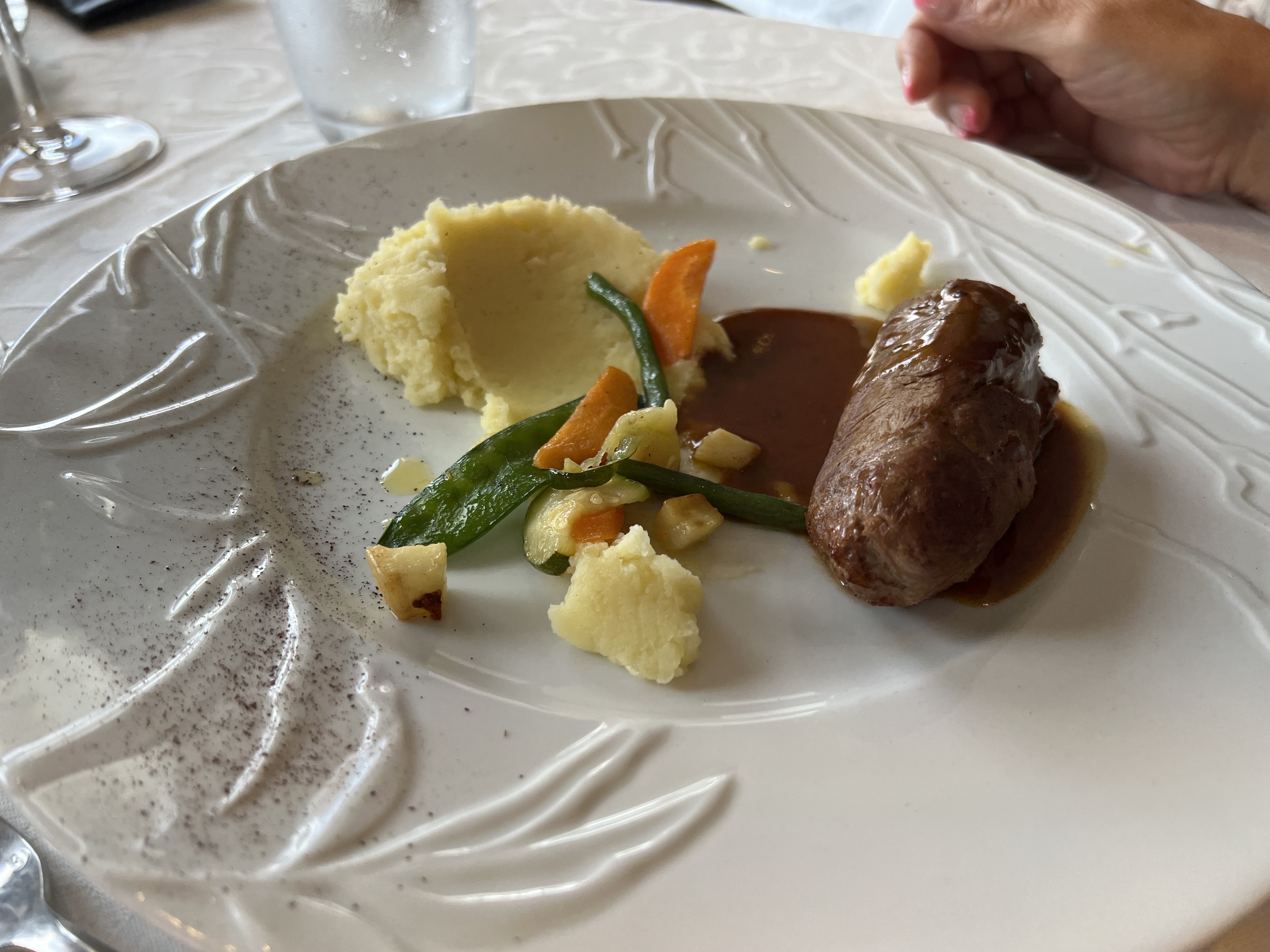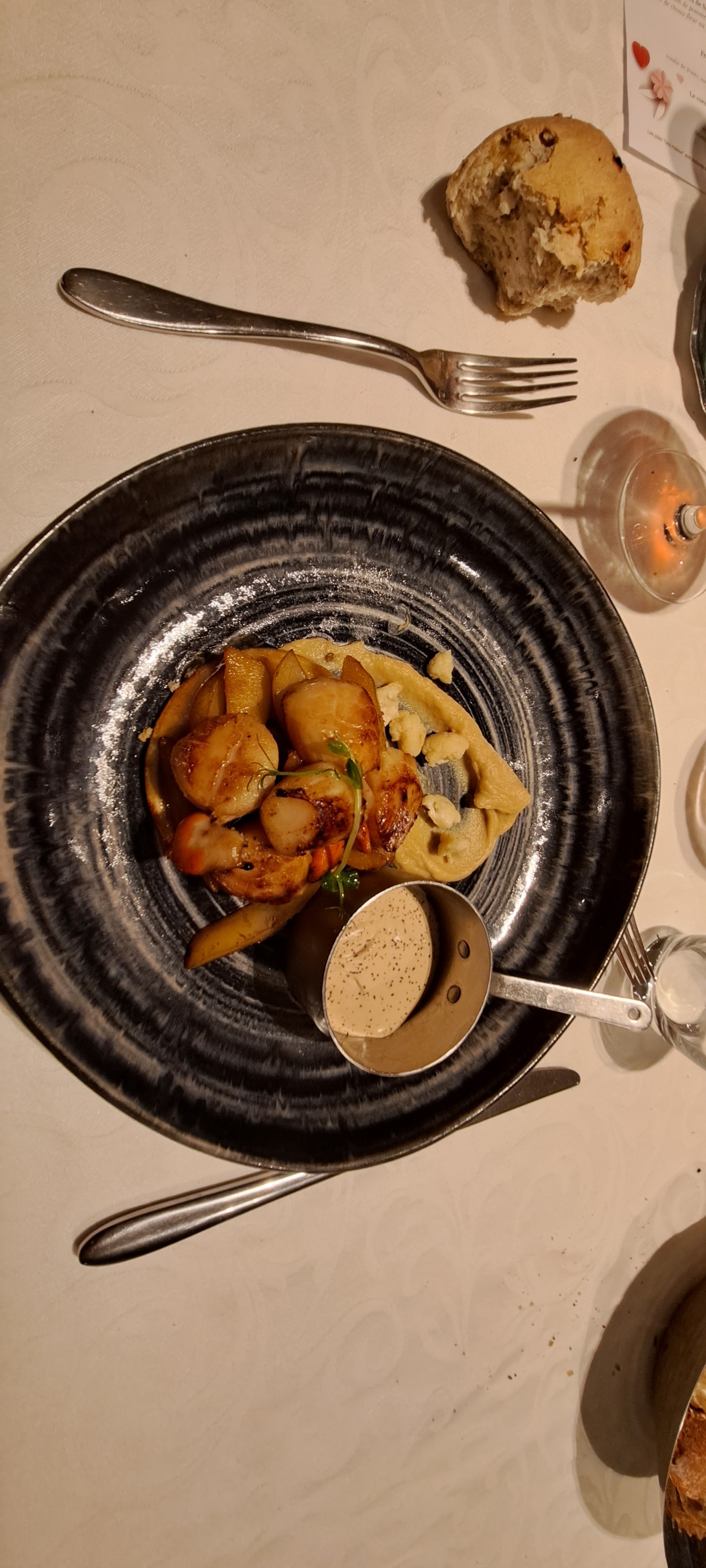 Décevant, plusieurs fois que j'y ai dîné, c'était un ravissement pour mes papilles, là, ce soir, on était que 4 dans le restaurant, et assiettes bâclées, tellement décevant...photo de mon foie gras, servi en talon !!! Je n'avais jamais vue çà... dans un restaurant haut de gamme.... navrant