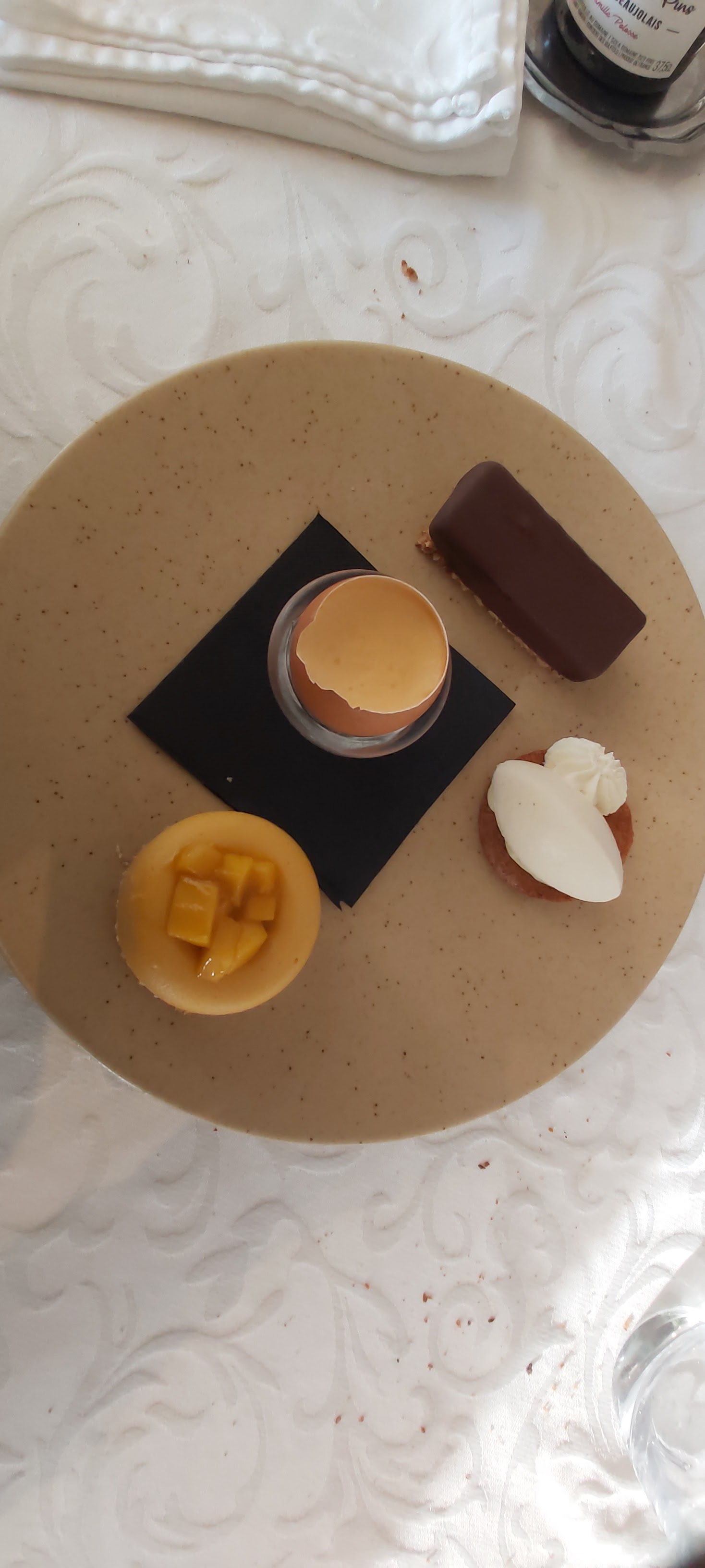 Je m'attendais a plus. Très belle vu. Par contre dans le menu a 35 euro la tourte a la carotte bof. Et dans le menu enfant le dessert gâteau au chocolat a été complétément cramé, en bas. J'ai du donner mon clafoutis banane chocolat a ma fille. Car son dessert était immangeable. C'est pas parce que c'est le menu enfant, qu'il faut négligé la préparation des plats. Surtout que le menus enfants est assez cher chez vous. A 15 euros le menu on s'attend quand même avoir un dessert bien fait