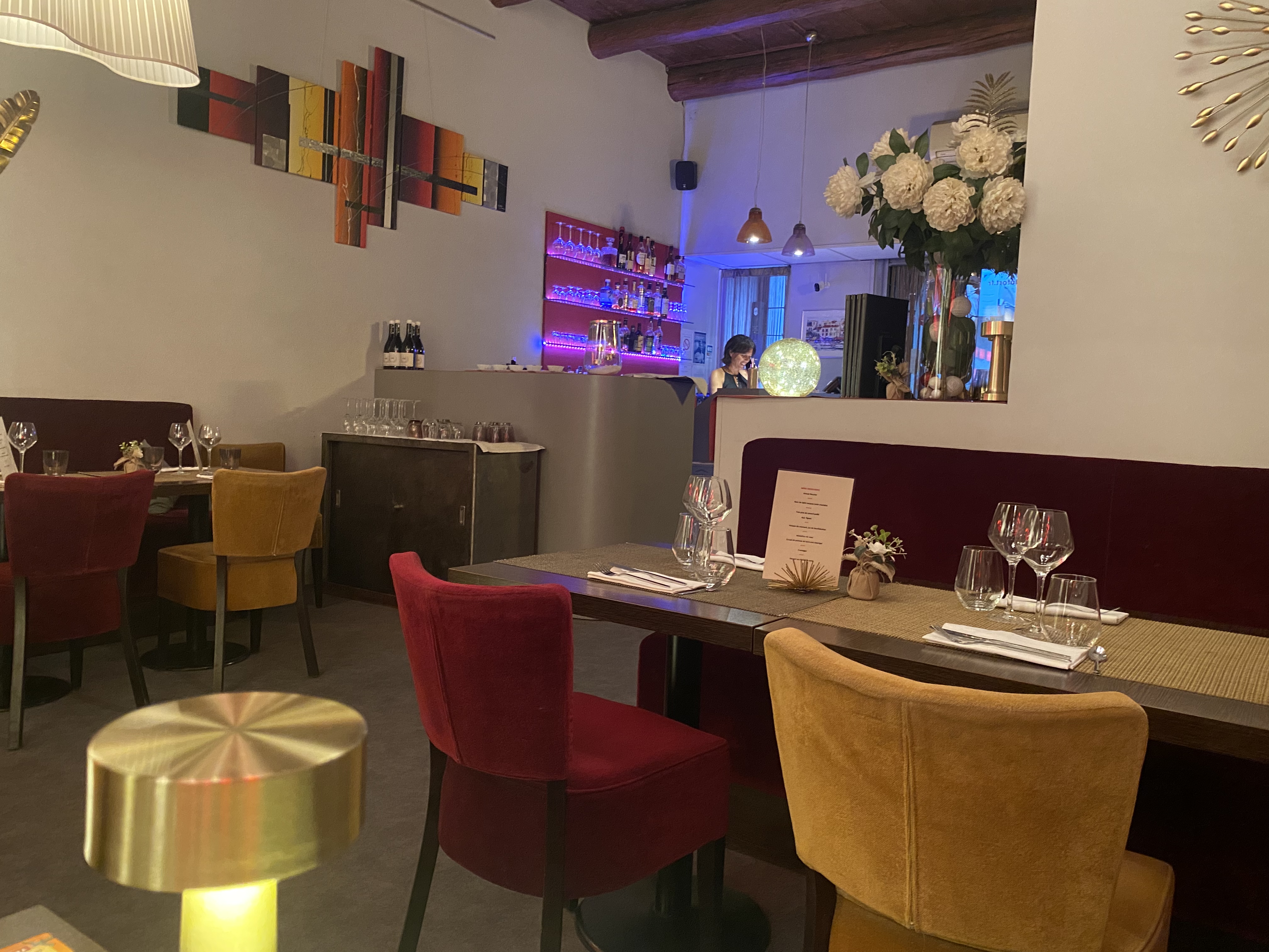 Le lieu est agréable et calme. La décoration sobre et chaleureuse. L'éclairage est très bien pensé. Le service ne souffre d'aucun reproche. Attentif, discret et efficace. Nous, avons beaucoup apprécié le menu dégustation. En 4 plats, fromage et dessert. Seuls les desserts, assez communs, étaient un peu en dessous du reste. Nous avons passé un excellent moment.