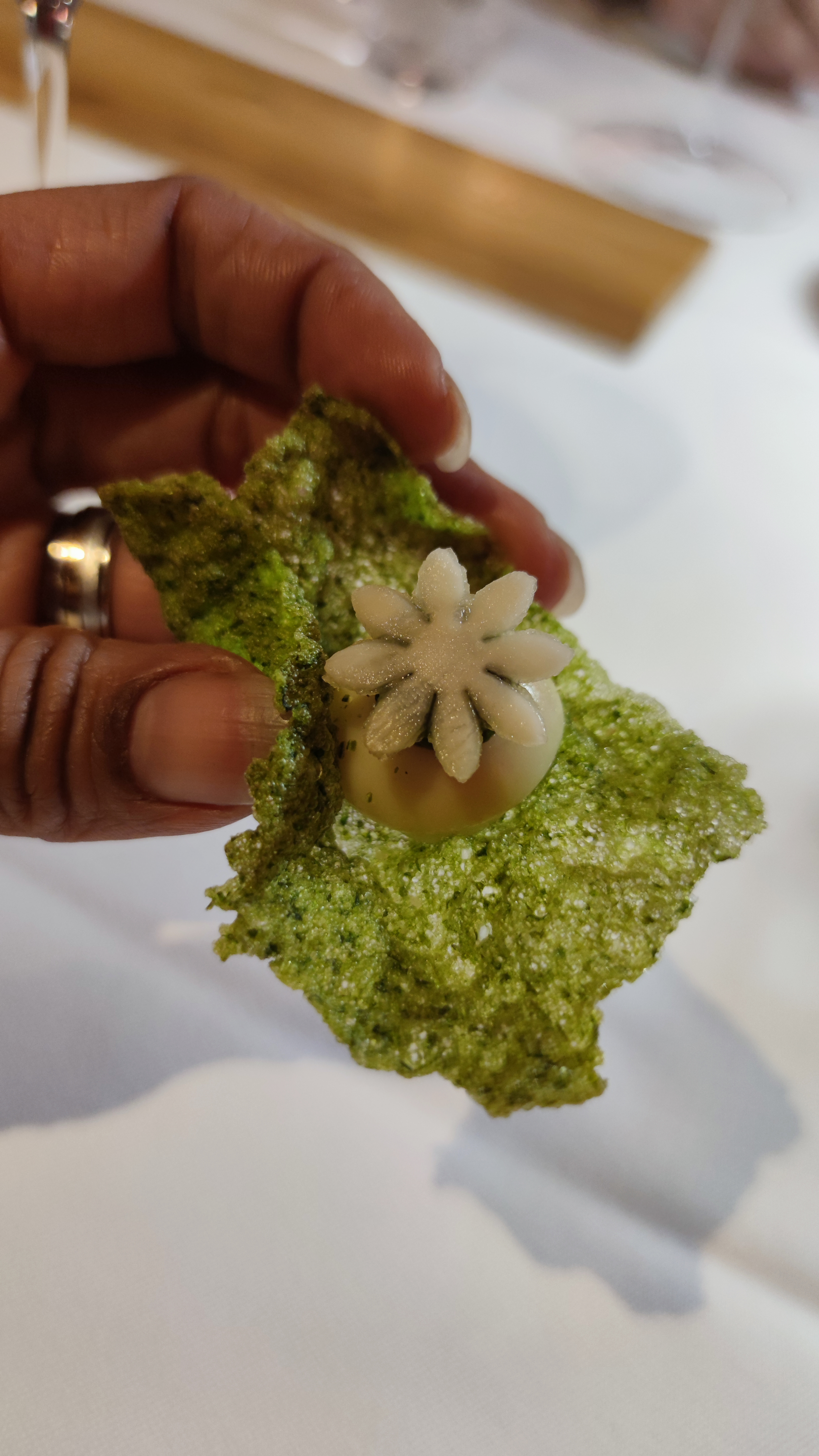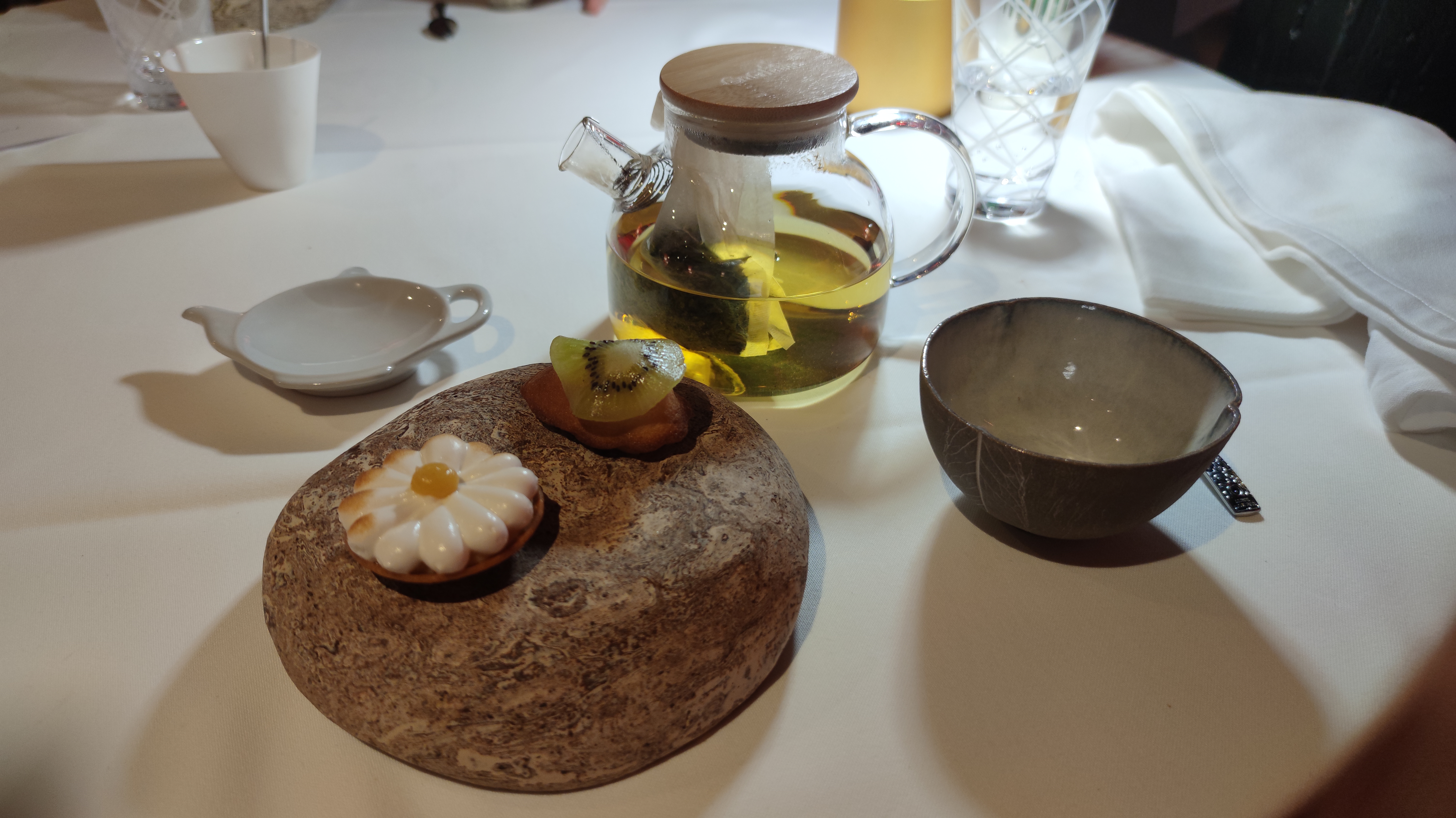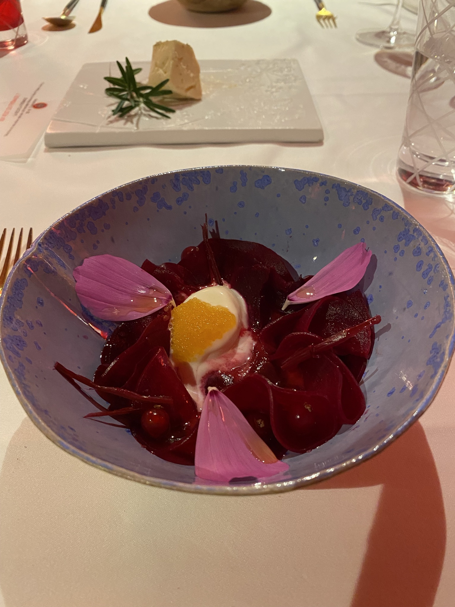 Un très beau moment dans ce lieu hors du temps où cuisine rime avec poésie. Un enchaînement d’assiettes toutes plus originales les unes que les autres, sublimées de vins savamment choisis. Assurément, ce lieu mérite sa renommée et ses distinctions.