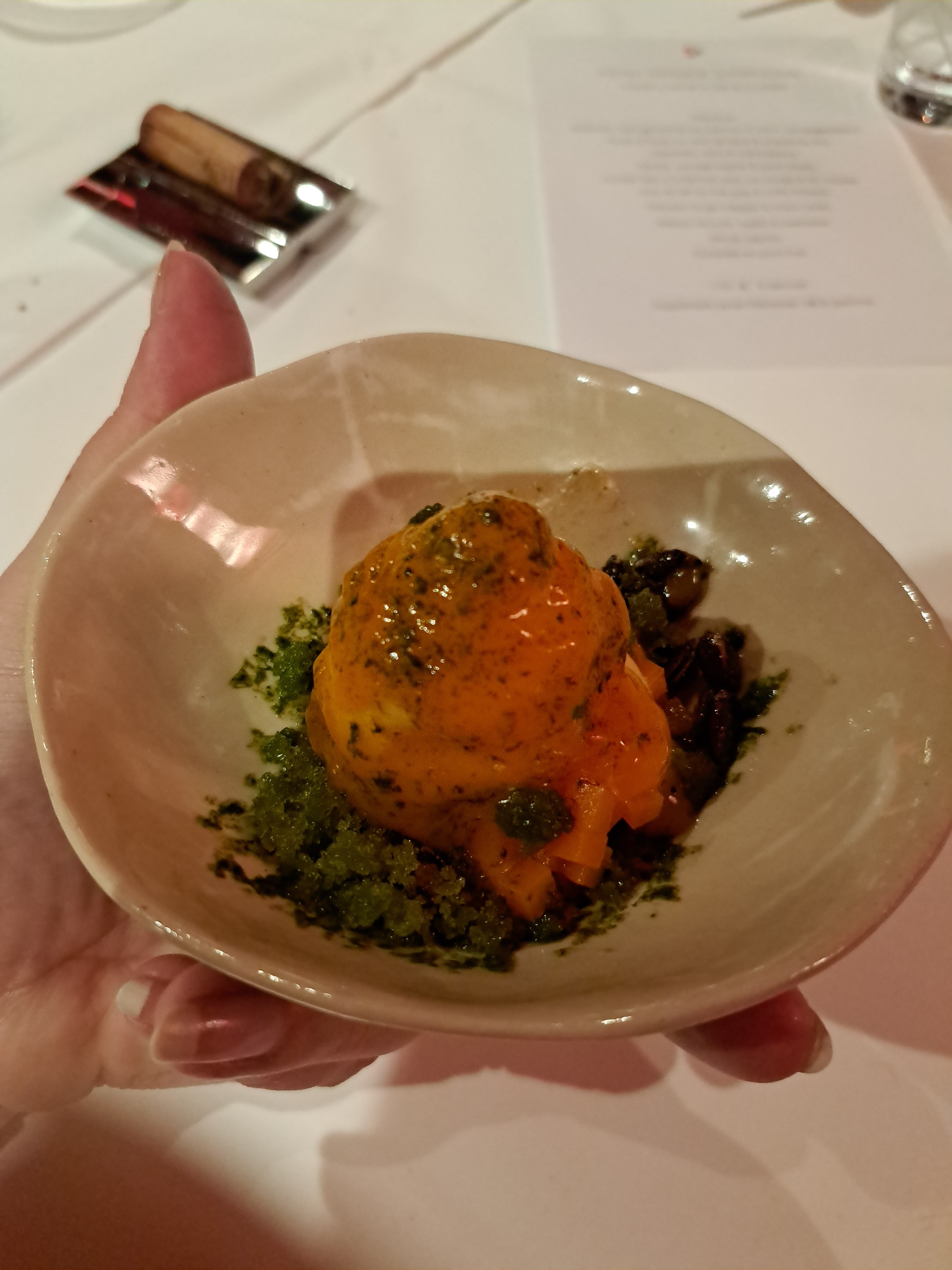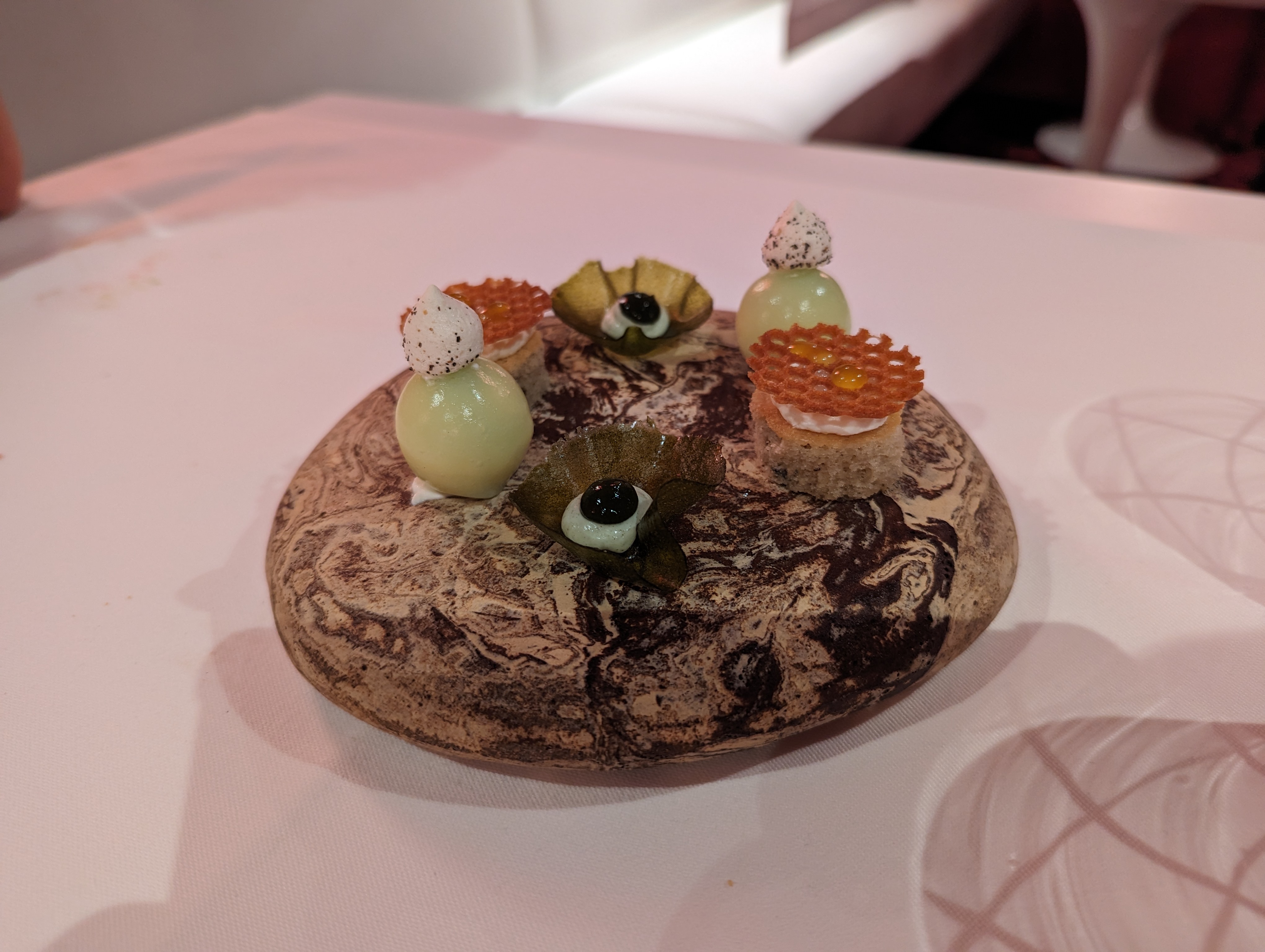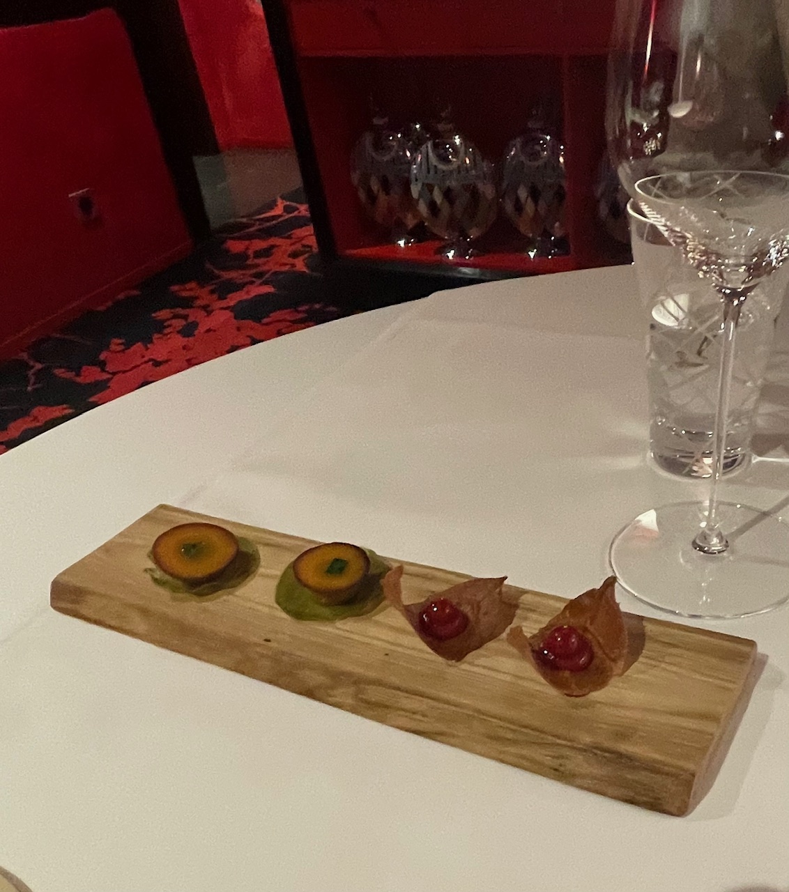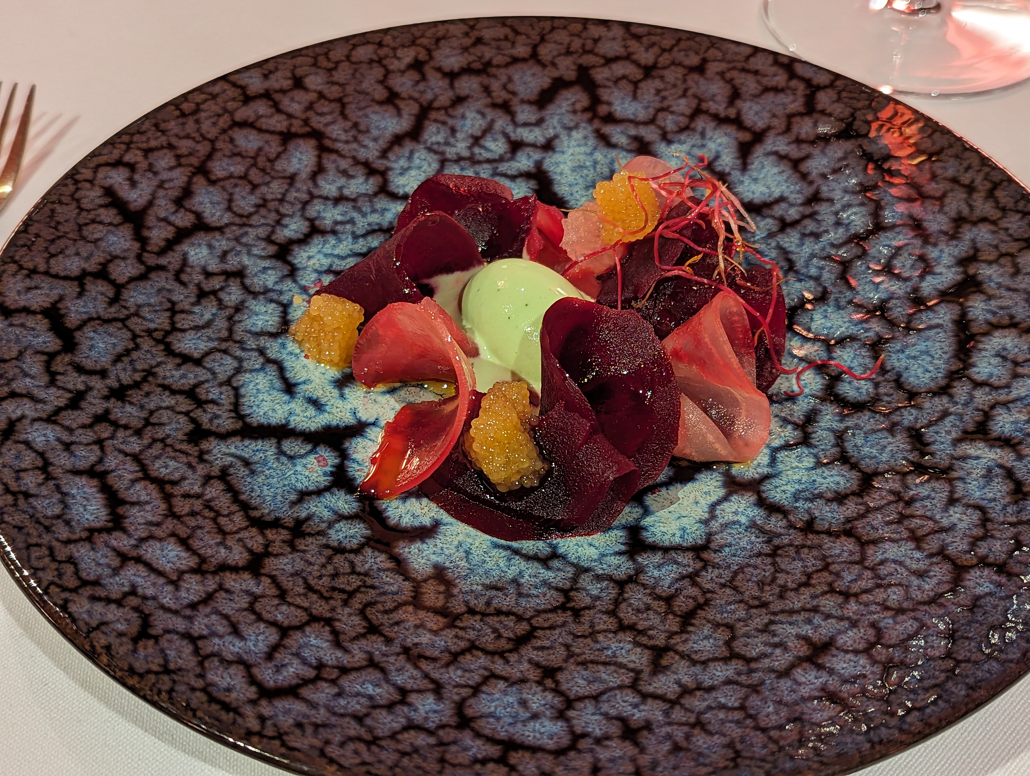 Un très beau moment dans ce lieu hors du temps où cuisine rime avec poésie. Un enchaînement d’assiettes toutes plus originales les unes que les autres, sublimées de vins savamment choisis. Assurément, ce lieu mérite sa renommée et ses distinctions.