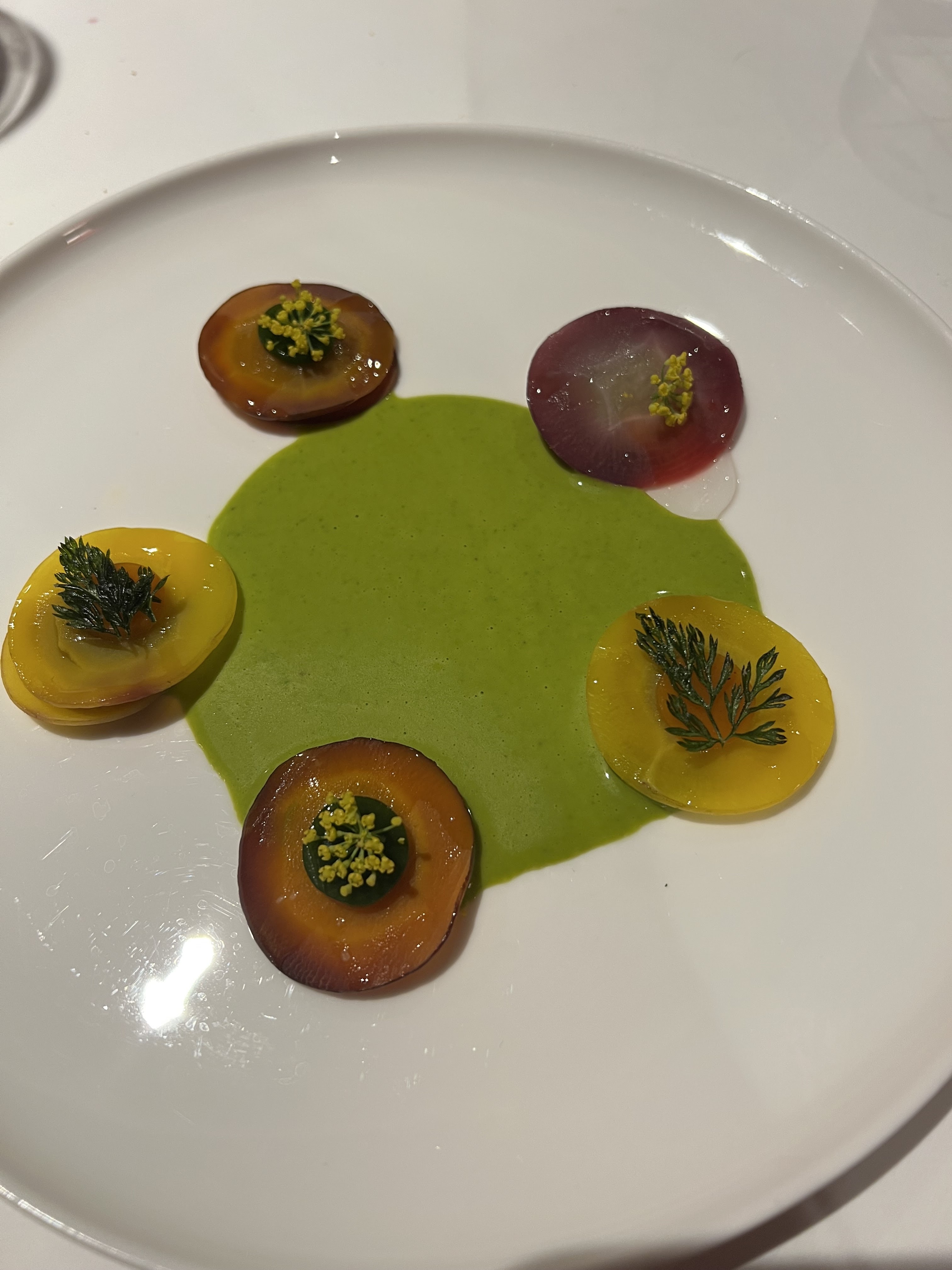 Le service était parfait, les plats étaient créatifs et délicieux. Les accords de saveurs étaient formidables. Notre serveur a recommandé d'excellents vins pour chaque plat, y compris le pinot gris le plus intéressant que j'ai jamais essayé.