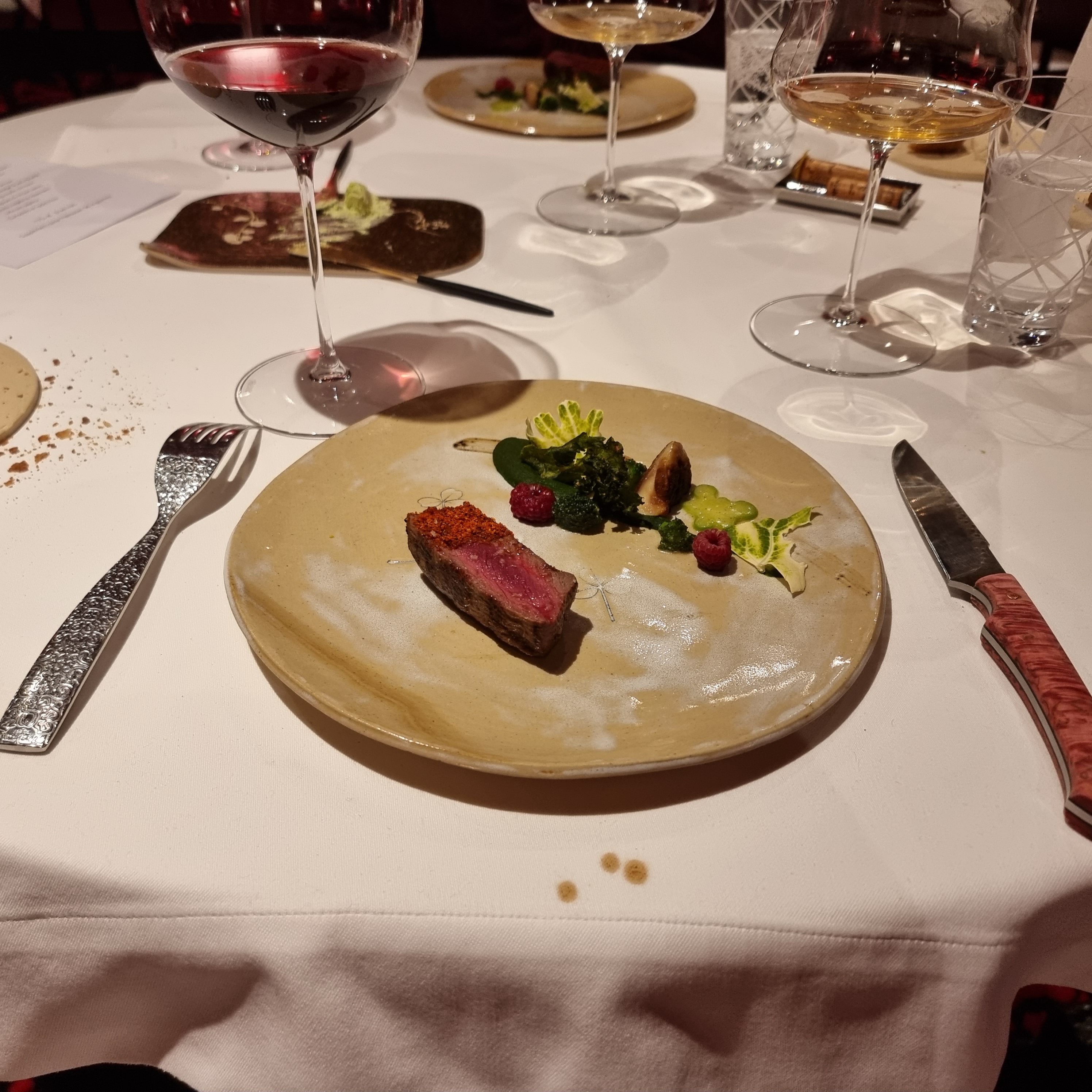 Nous avons reçu un accueil chaleureux et le service était professionnel. La nourriture était très convaincante et comportait de nouvelles créations surprenantes, mais avec de nombreuses répétitions de fenouil et de fraises, qui n'étaient disponibles qu'à bas prix. Nous avons également apprécié la vaisselle et les couverts. Les 7 plats étaient joliment présentés. Malheureusement, le menu et la carte des vins sont très confus et les prix sont un peu trop élevés étant donné qu'on est obligé de choisir parmi un menu préparé. Pour ce prix, vous pouvez vous attendre à plus de flexibilité de la part de la cuisine.