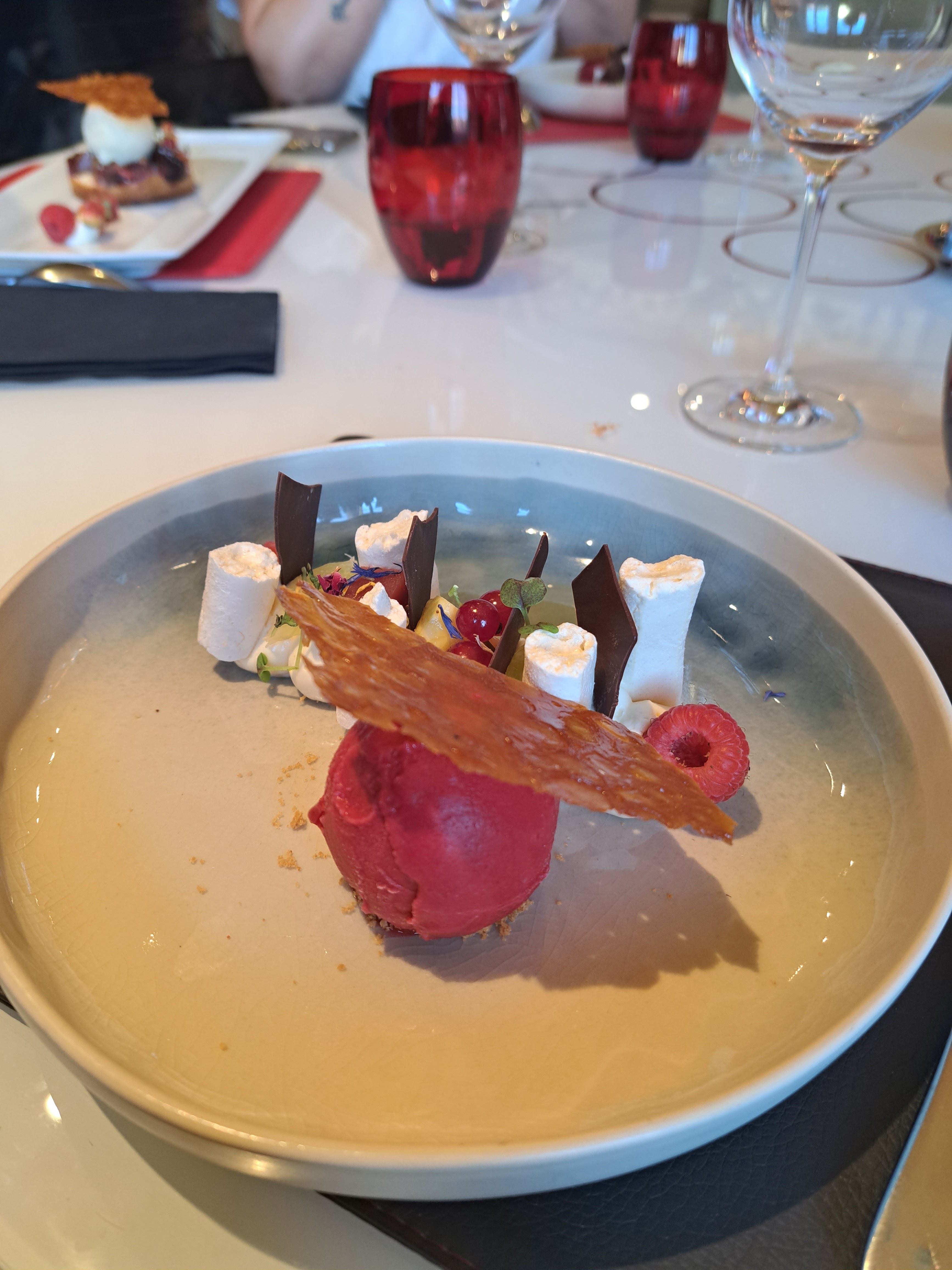 Très bien mangé, bonne cuisine raffinée, dommage que les dessert ne suivent pas, celà manque de fraicheur, de goût, pas de dessert fruité à part les pêches qui semblaient être cuite à l'eau, le club à la pistache ne doit pas être servi l'été, les petits sorbets qui accompagnent son très light, à améliorer.....