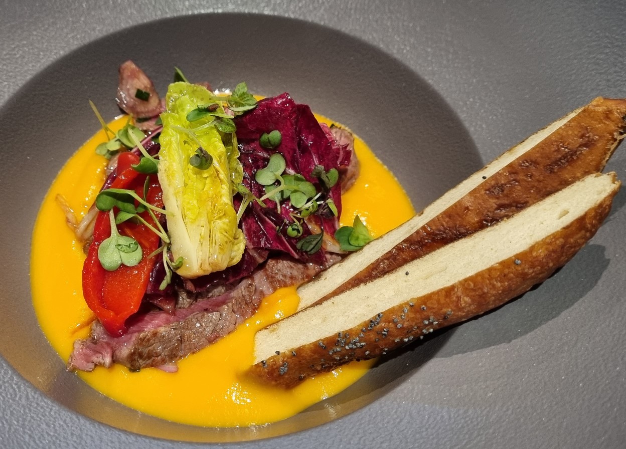 de bons produits locaux mais un assemblage brouillon : un trop grand nombre de produits dans l'assiette du plat principal résultant dans un manque d'harmonie. La sélection de vins a un rapport qualité prix imbattable mais le menu 5 services est trop copieux et manque de raffinement.