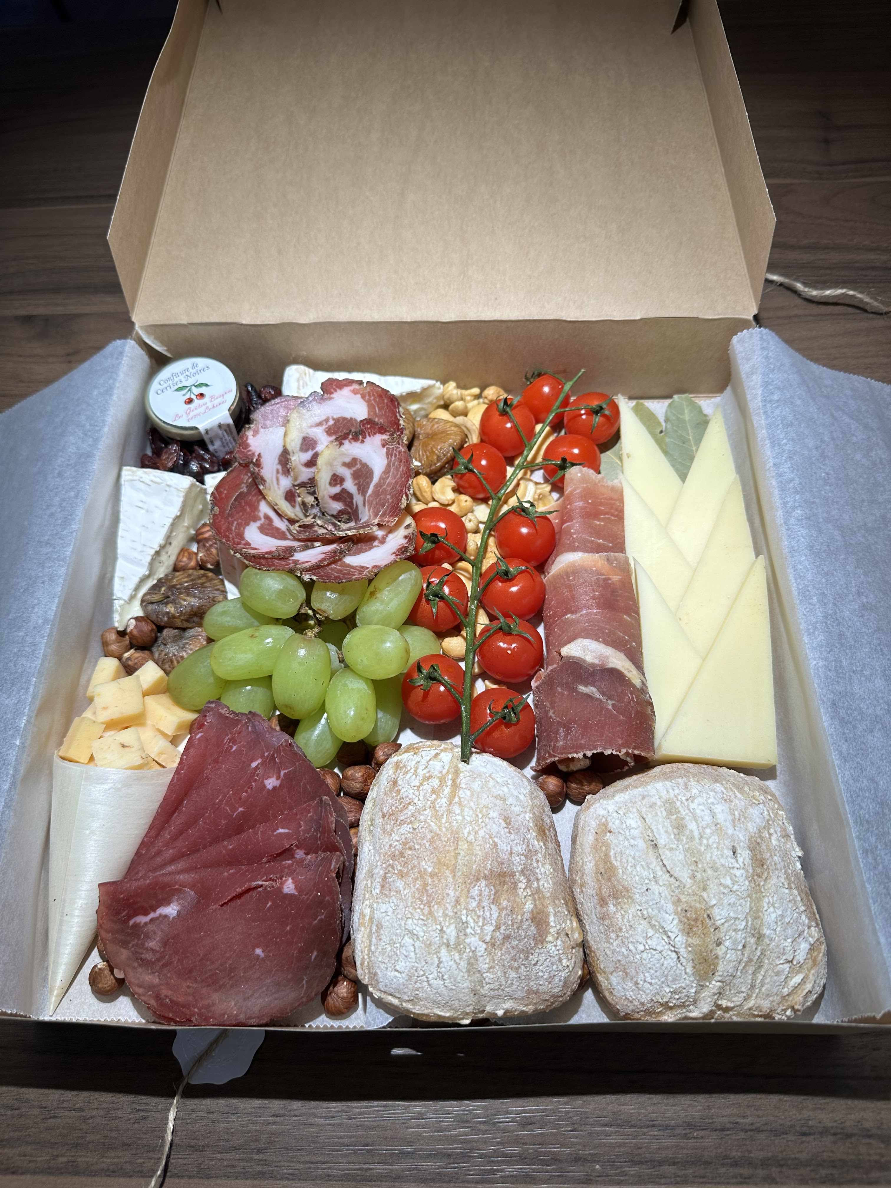 Des planches de charcuterie et de fromages pour l’apéro dînatoire, c’est plateaux sont parfait ! Déjà par la présentation soignée et attentionnée, avec notre prénom sur le paquet. Puis par les petites attentions à l’intérieur (je vous laisserai les découvrir 😉) et enfin par la qualité des produits ! Et le tout avec Olivier qui est très sympathique ! Bonne dégustation !