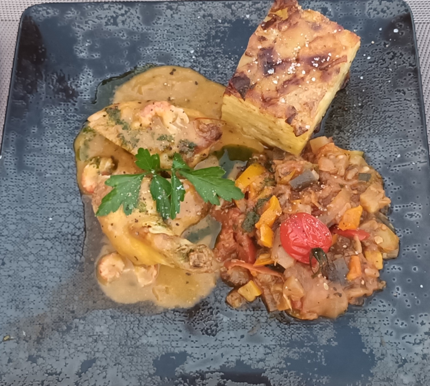 Superbe accueil , présentation des plat soignée , repas pris sur la terrasse avec une belle vue et un très bon service et pour finir de très bon vins et l apéritif maison rien na dire dessus. On reviendras avec grand plaisir