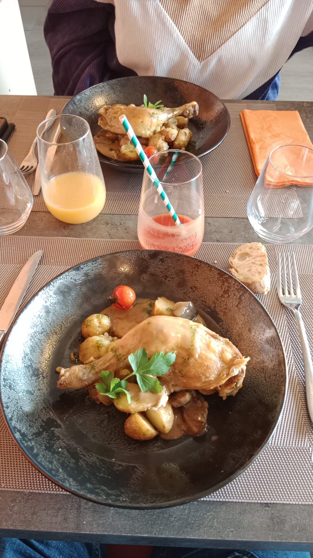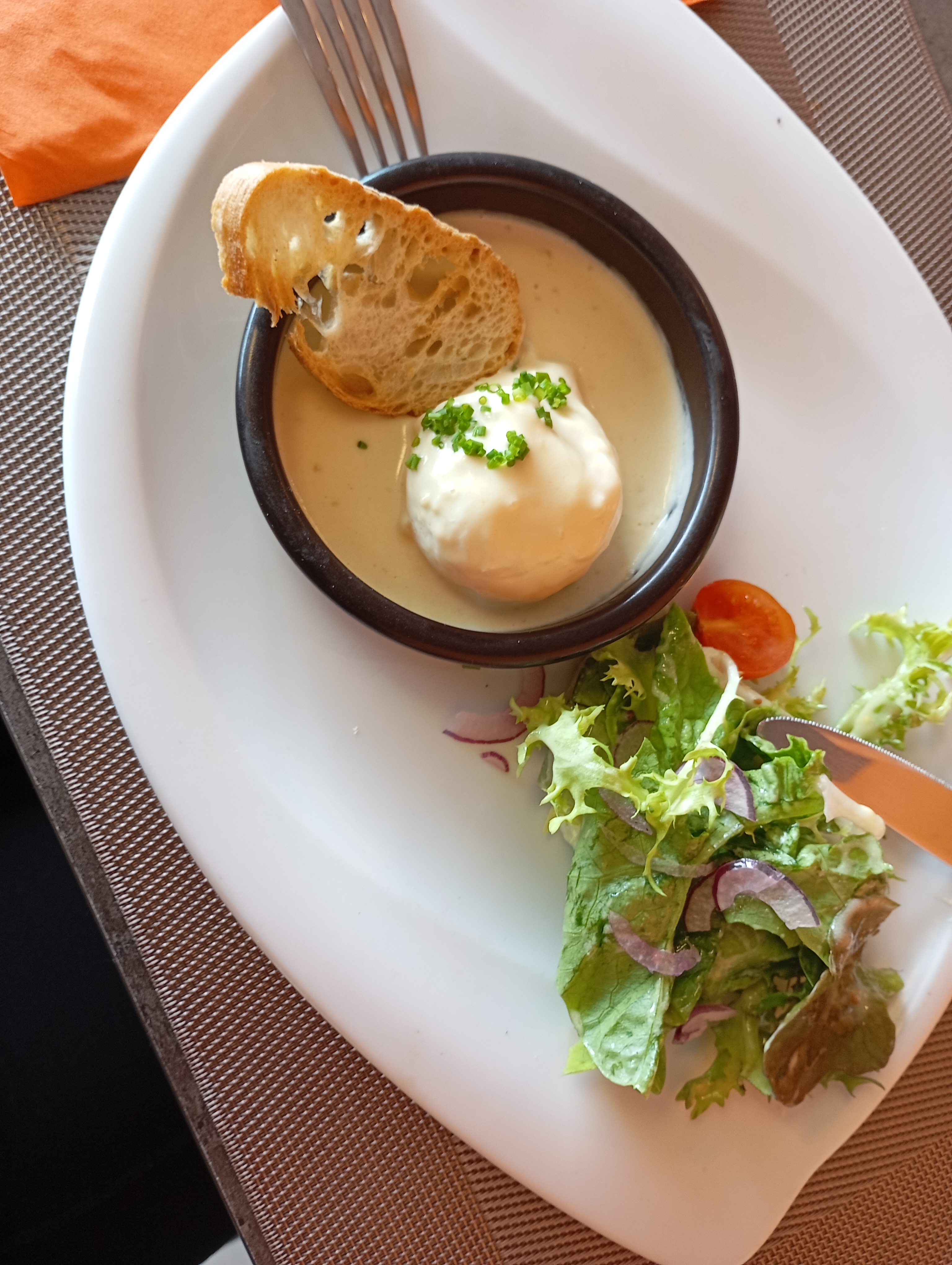 Je n’avais que 30 minutes pour manger, on proposé l’ardoise Mission réussie, arrivée 12h30 Départ 13 heures. Belle entrée bien présenté. À plat du jour agrémenté de nouveaux légumes. Un joli dessert avec de la crème chantilly. Un serveur qui ne chôme pas une patronne qui gère l’entrée et le service. Je recommande ce que les restos à deux pas de la sortie d’autoroute