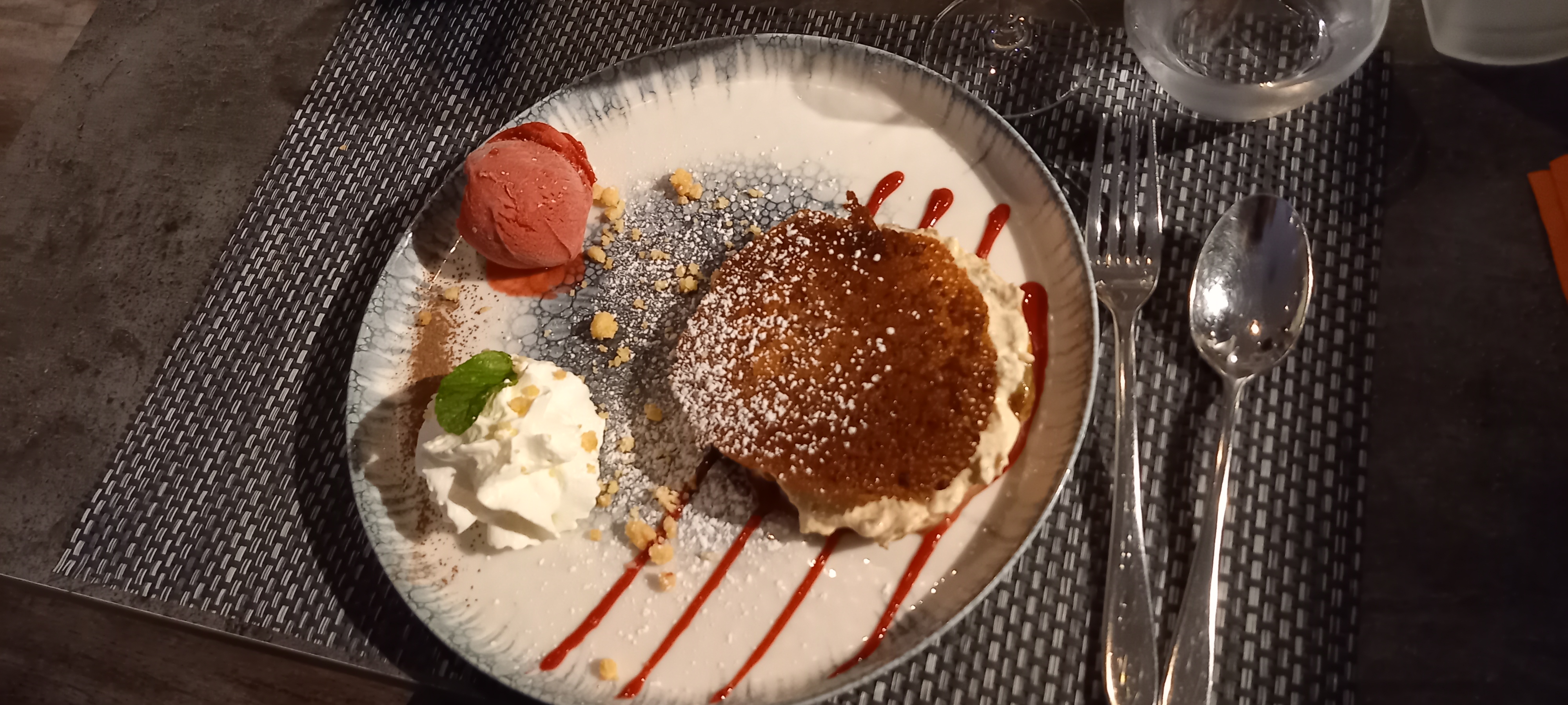 Le cuistot est au top pour la crème brûlée..a ne pas râter. Le poisson et le suprème de poulet étaient cuits à point et servis chauds. Service et accueil très bien. Une bonne halte pdt nos vacances