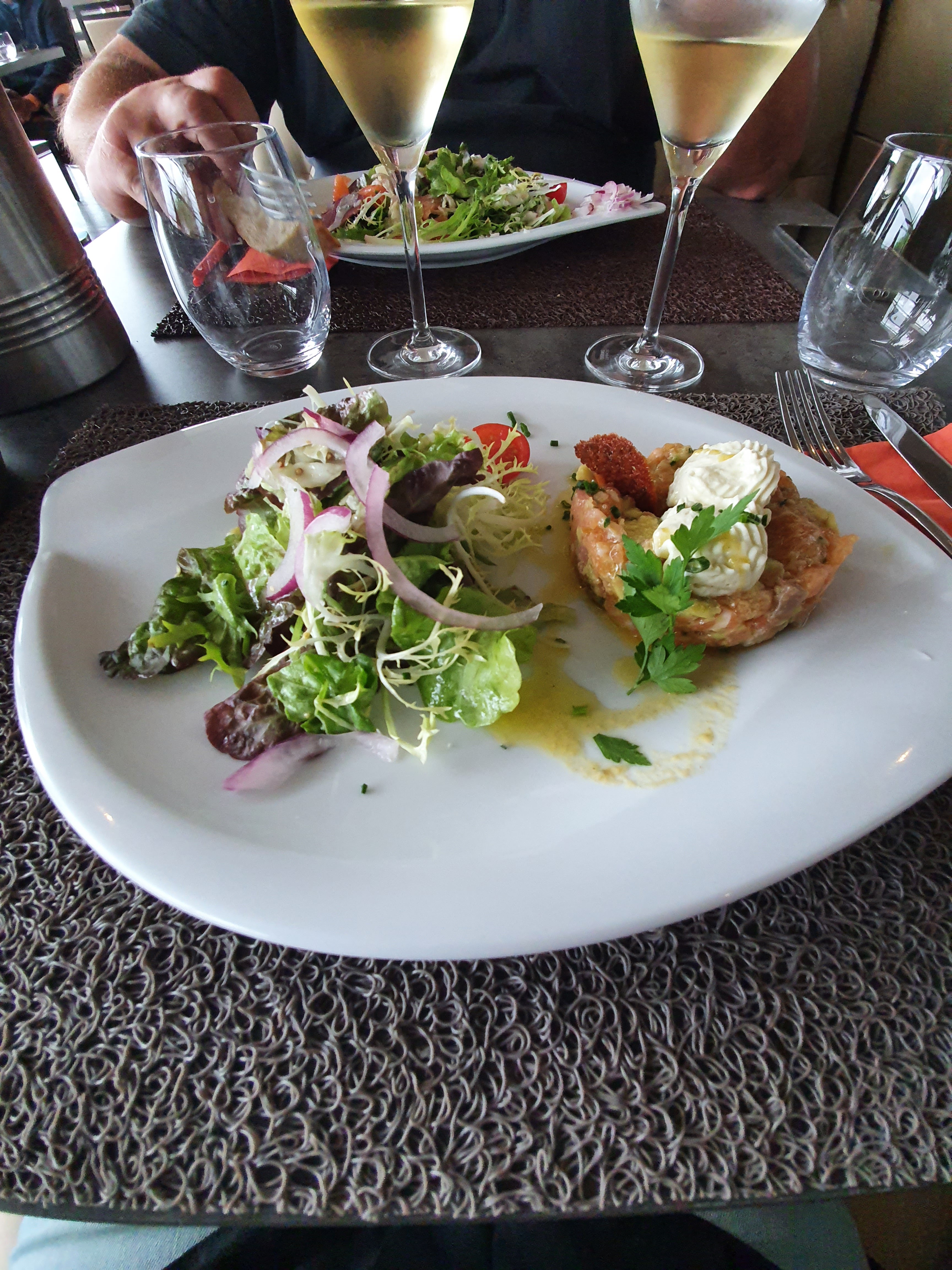 Restaurant calme à proximité de son hotel. Terrasse avec vue dégagée, personnel acceuillant et sympathique. Côté table de bon produits je vous conseil le menu dégustation qui permet de choisir entrée, plat et dessert ou fromage. Je recommande 100e pour 2 avec cocktail et verre de vin .