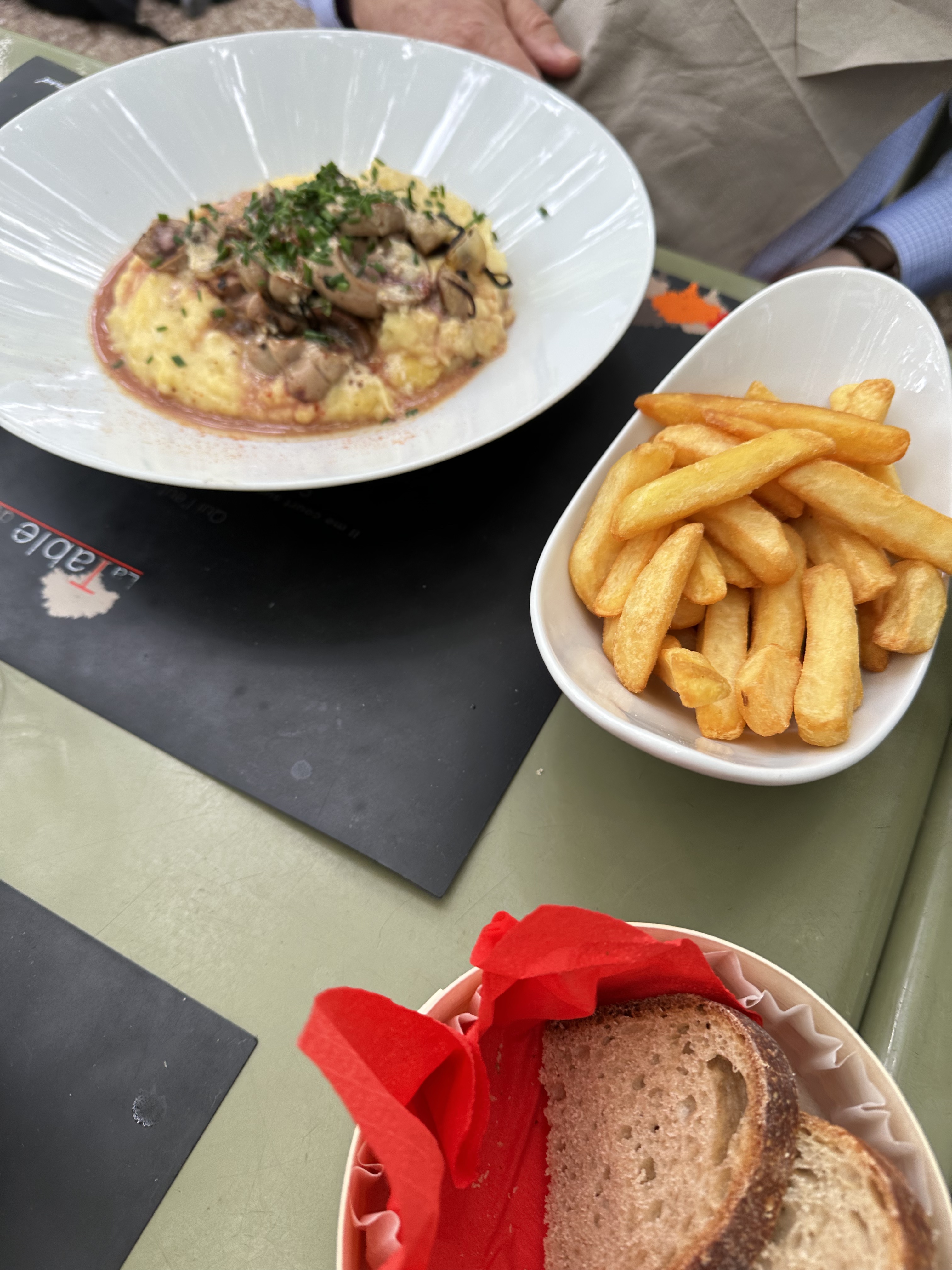 Piège à touristes. J'ai sorti du pain dur et rassis que j'ai dû rendre, j'ai facturé 7 euros pour du jus d'orange concentré et la femme aux cheveux blonds était méchante, a montré un visage méchant à mon petit bébé et l'a fait pleurer. Évitez si vous le pouvez. Il y a plein de très bons restaurants à Paris. Ce n'est pas l'un d'eux. Bon voyage!